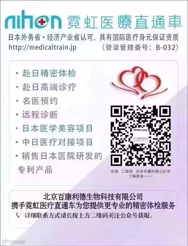在北京拥有20余年药品、医疗器材开发销售相关服务经验的北京百康利德生物科技有限公司协同获得日本外务省身元担保、第一家获得“日本国籍医疗身份保证牌照”、拥有一对一专人服务的品牌霓虹医疗直通车竭诚为您提供专业的医疗咨询、精密体检、尖端医疗、整形美容服务。
