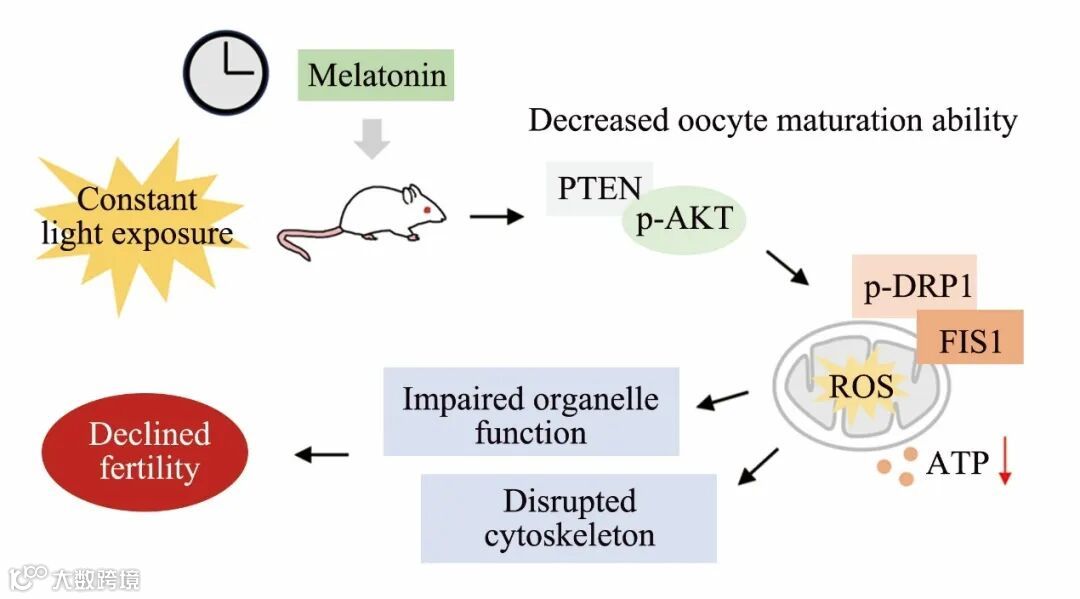 昼夜节律紊乱会通过PTEN/AKT通路诱导线粒体功能异常,进而降低卵母细胞质量,最终导致雌鼠生育能力下降。