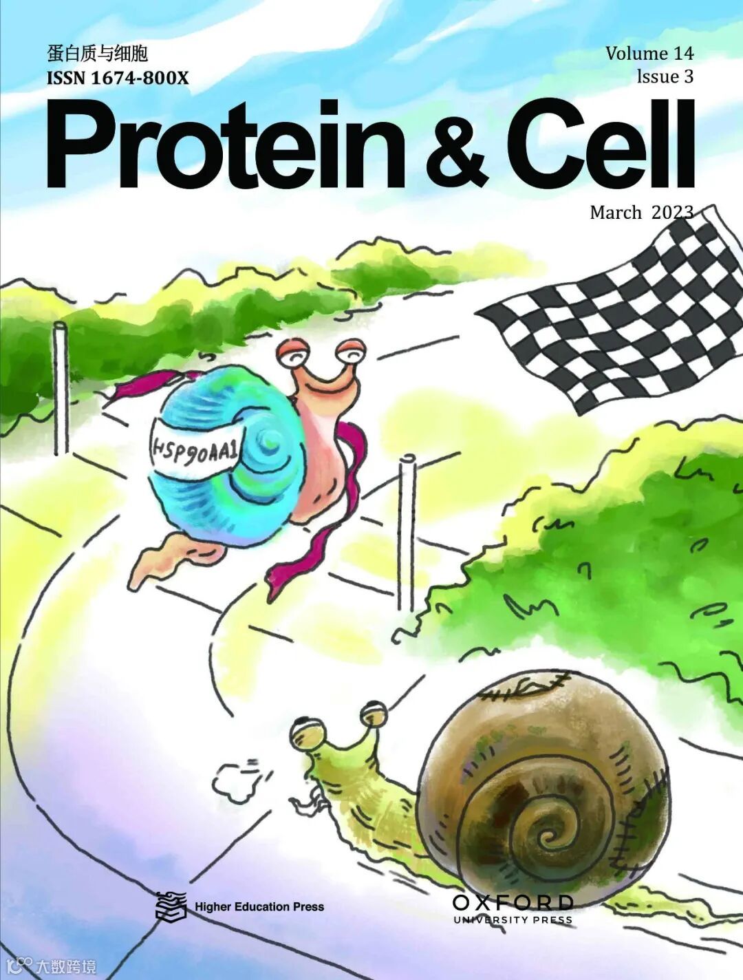 COVER STORY: Presbycusis is a progressive and irreversible hearing impairment caused by cochlear aging. The risk of developing presbycusis increases rapidly after the age of 40. In this issue, Sun et al. (page number 180–201) established a comprehensive singlecell transcriptomic atlas of mouse cochlear aging at high temporal resolution. In the cover image, the snails in a running race represent the cochleas at different ages, because the shape and structure of the snail shell are similar to those of the cochlea. Plaques on the shell of the failing snail indicate damages to the cochlea due to aging, while the winning snail has HSP90AA1 on its shell, suggesting that activation of HSP90AA1 can alleviate ER stress-induced damages with age. Artwork by Yizhu Wang.