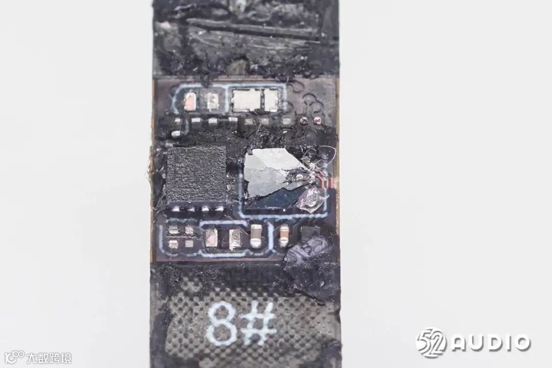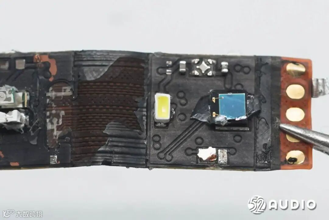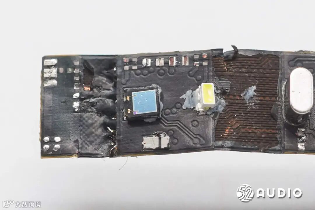在拆解过程中破损的芯片,推测为健康监测IC。