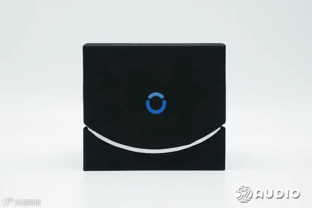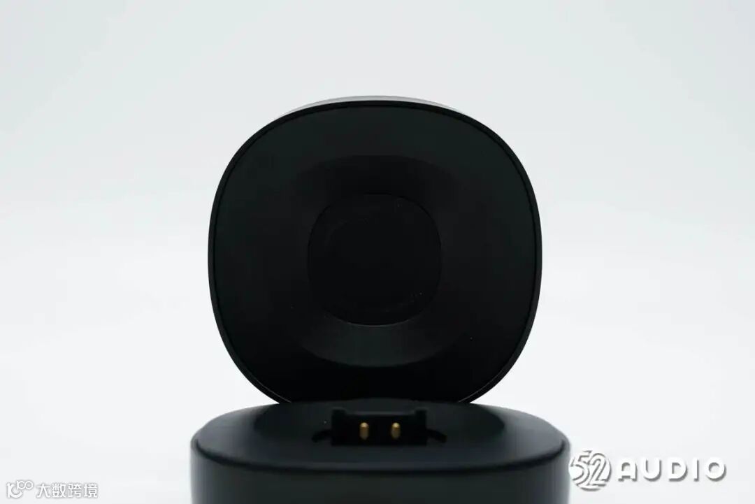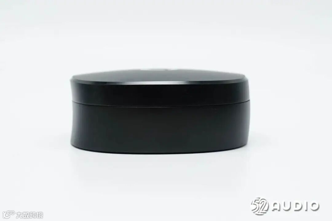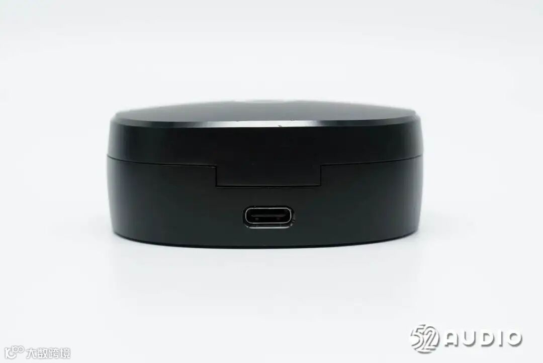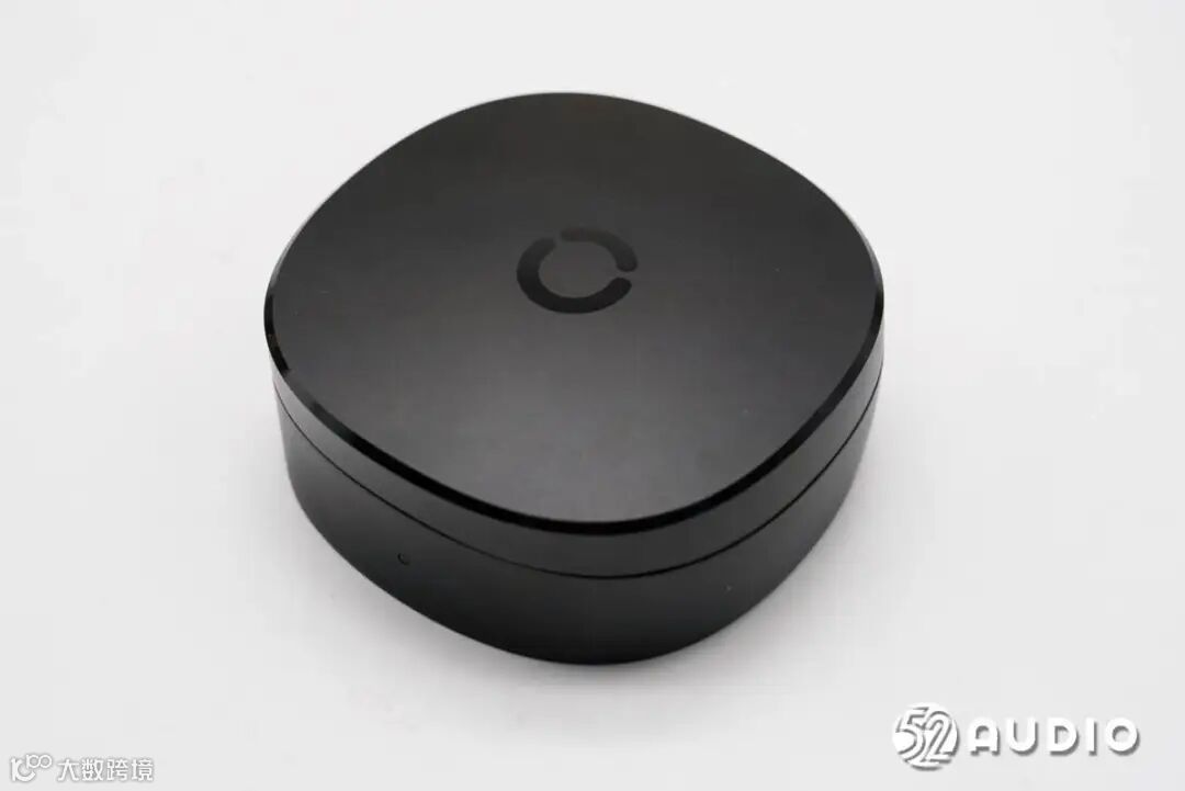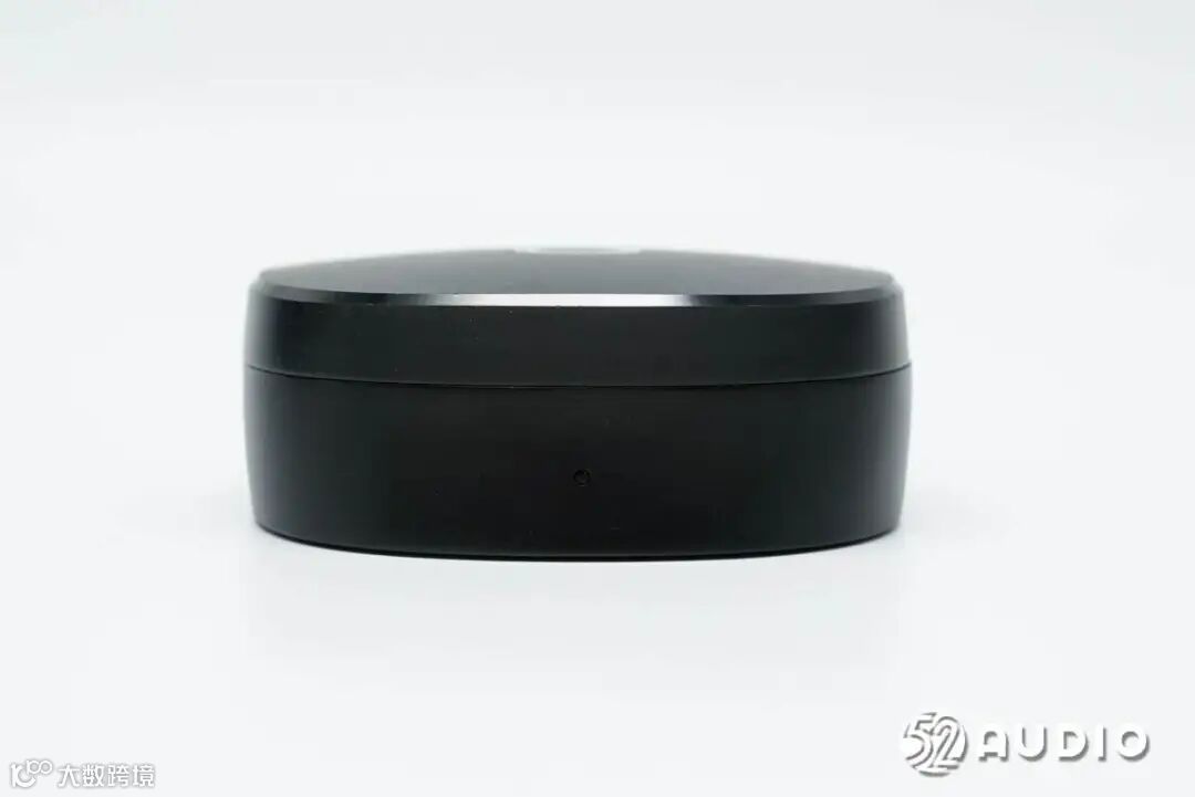 充电盒正面外观一览,采用了凹面设计,更方便于开盖。机身上设置有一颗指示灯,用于反馈充电状态。