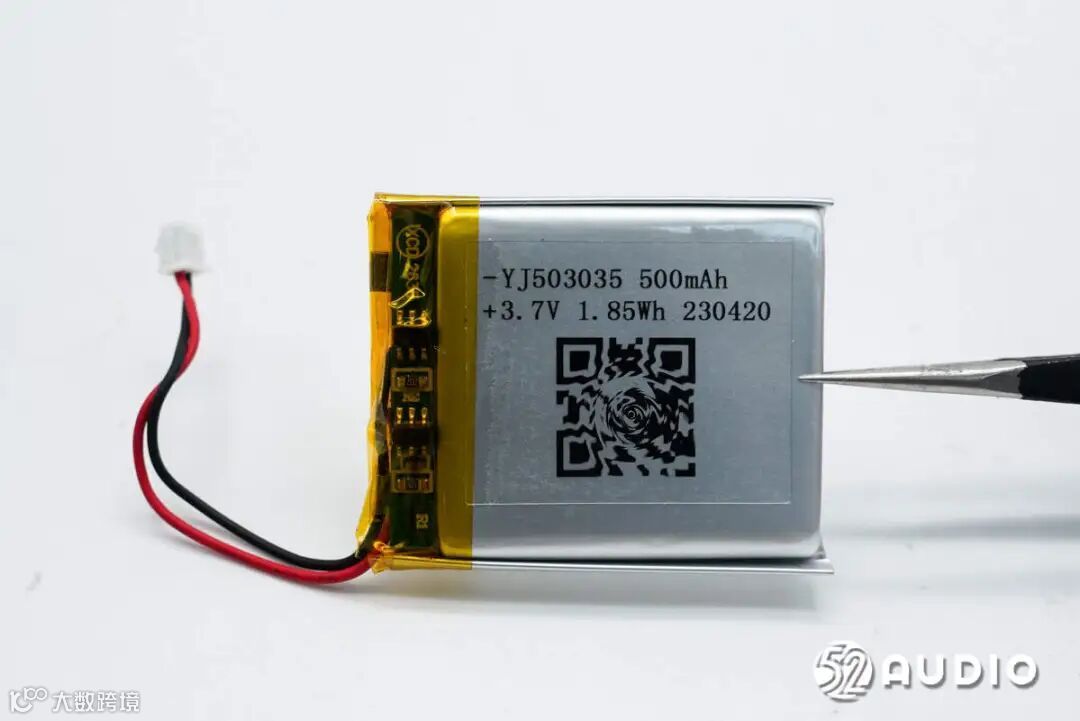 充电盒内置锂电池型号:YJ503035,标称电压:3.7V,额定容量:500mAh 1.85Wh,来自YJ言九电子。