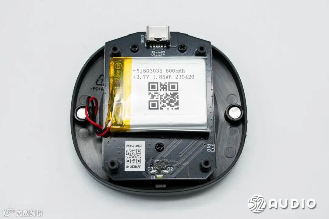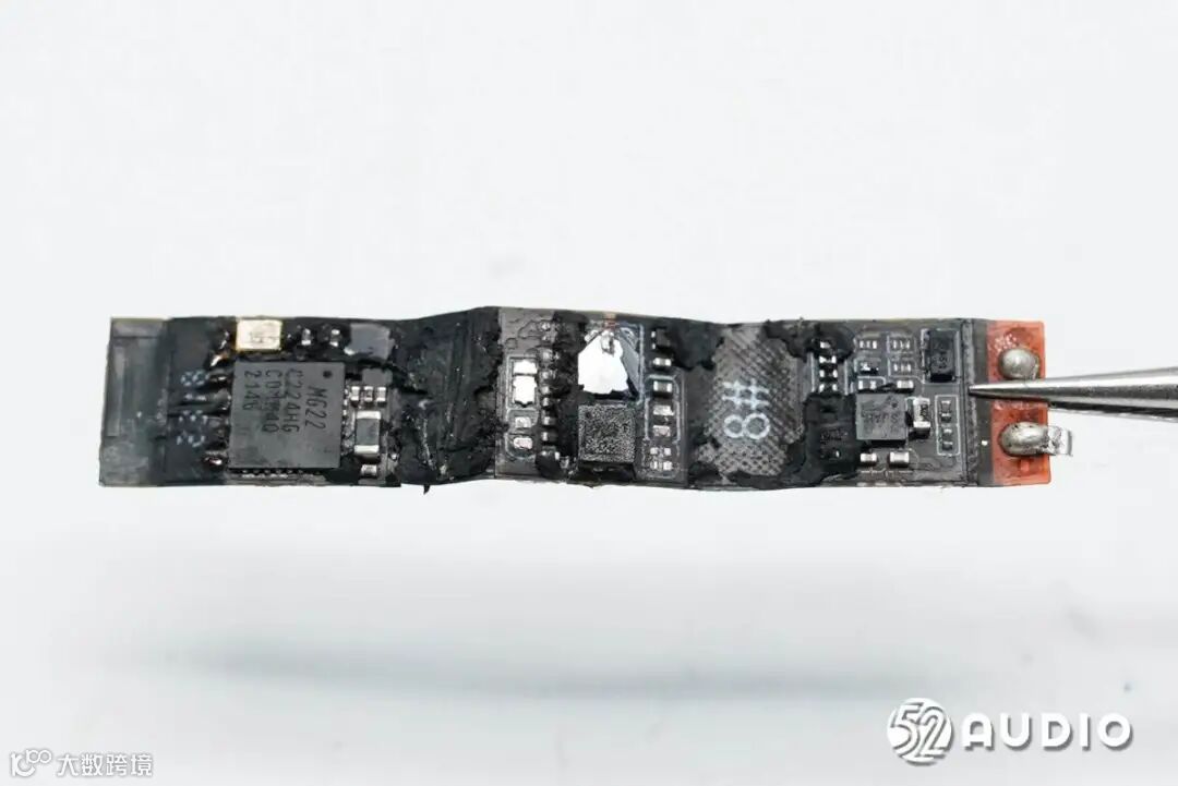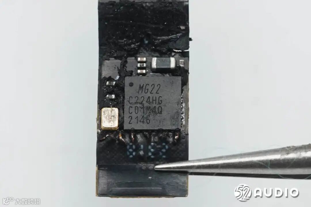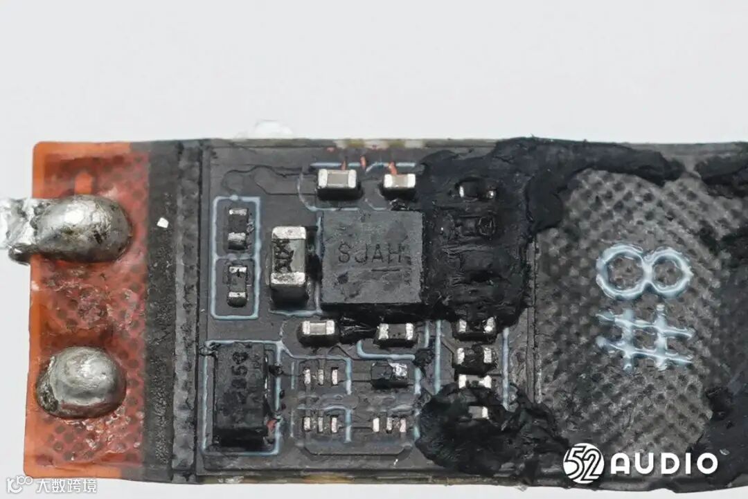 内部主要配置方面,充电盒搭载了YJ言九电子3.7V/500mAh锂电池组,采用了ETA钰泰半导体ETA9697电源管理芯片,负责内置电池的充放电管理;采用Sinomcu晟矽微MC32F7062A0K单片机,负责充电盒整机控制;还采用了CrossChip芯进CC6207M霍尔效应开关,用于开盖即连功能。