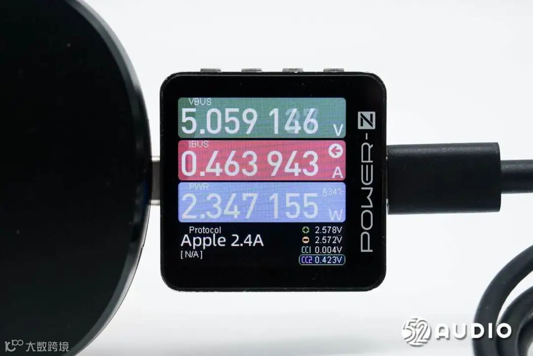 智研所采用CHARGERLAB POWER-Z KM003C测试仪对RingConn智能戒指进行充电测试,输入功率约为2.35W。