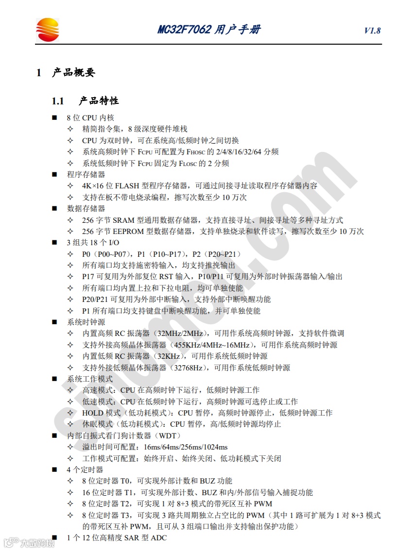 Sinomcu晟矽微MC32F7062系列详细资料图。