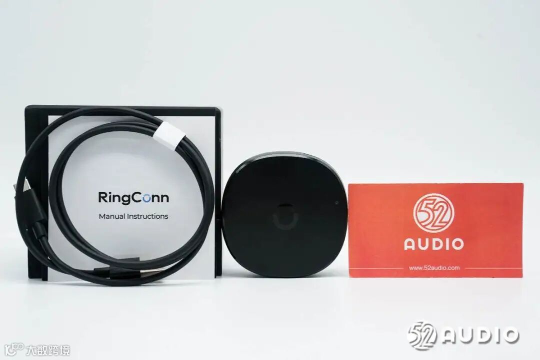 打开包装盒,取出内部所有物品,包括了智能戒指、充电盒、充电线和产品说明书。