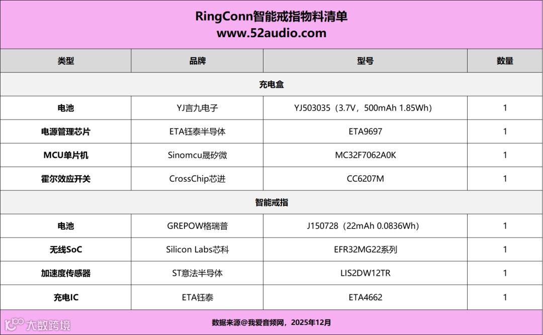 最后附上RingConn智能戒指的已知物料清单,方便大家查阅。