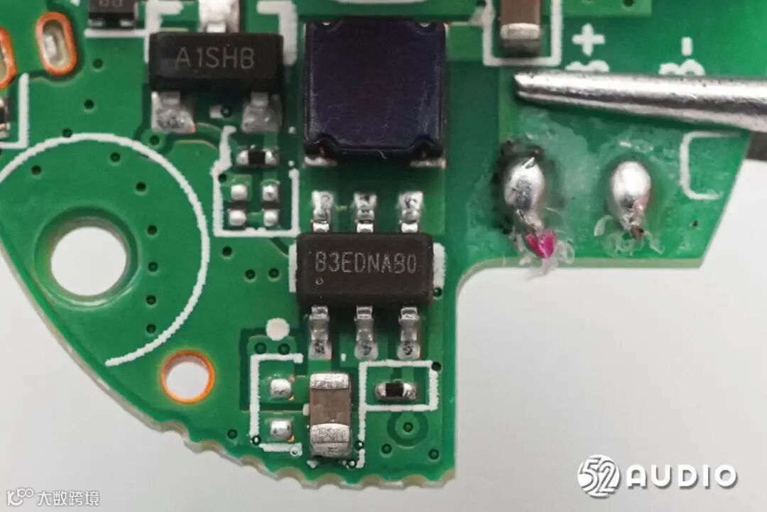 丝印“B3EDNAB0”的SinhMicro昇生微电子SSD101X可编程升压IC,负责为内置电池升压给耳机充电。