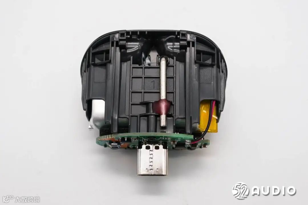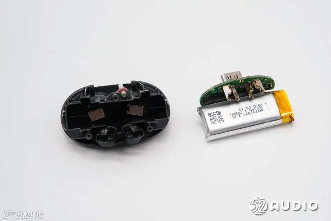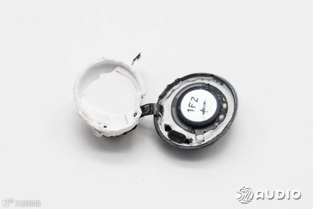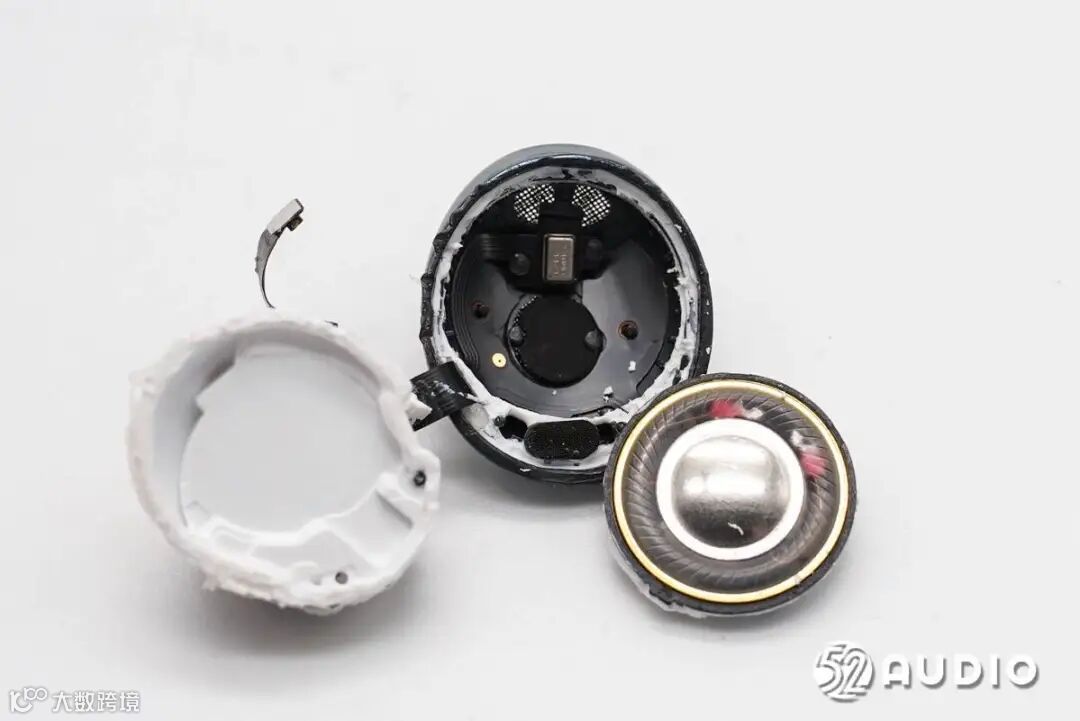 音腔内部结构一览,通过白色支架固定电池单元,同时隔离了音腔。