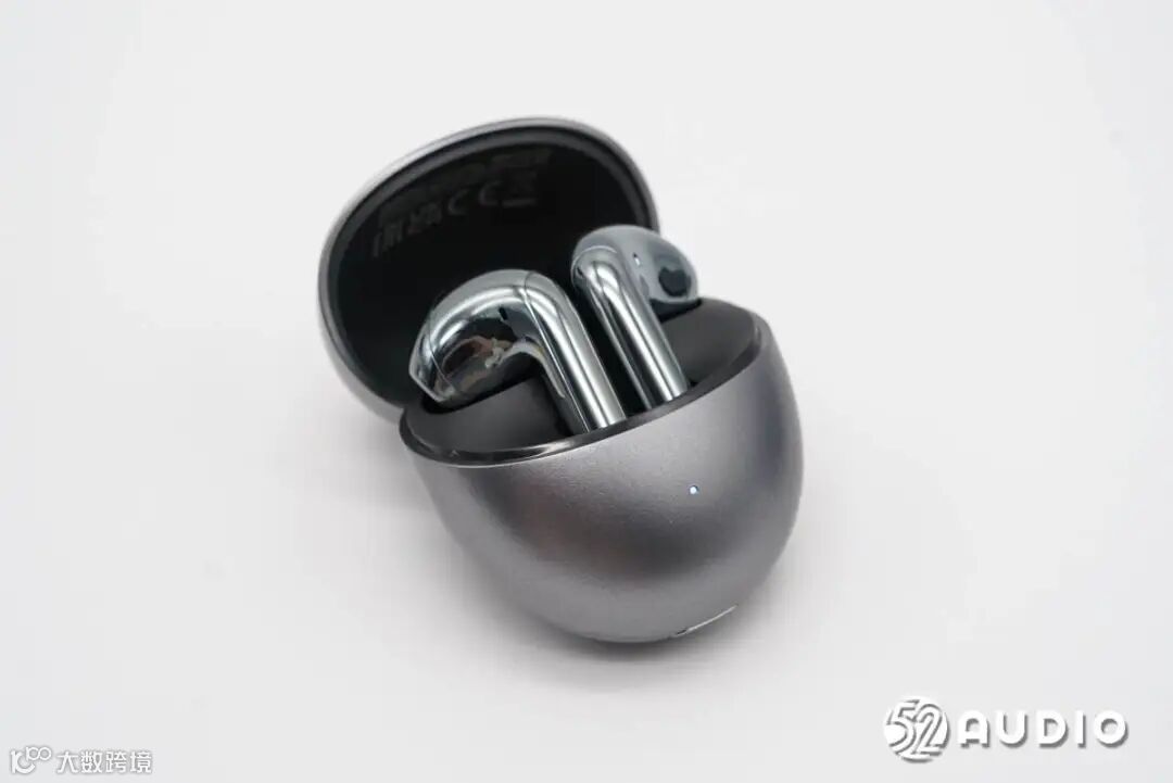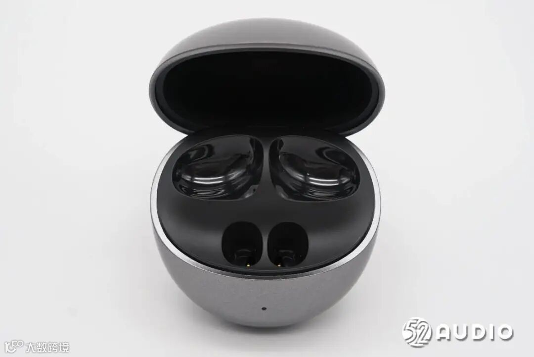 荣耀亲选TiinLab S7真无线降噪耳机充电盒采用了非常圆润的鹅卵石状设计,类金属的磨砂涂层,质感出色,体积小巧便携。机身正面设置有一颗指示灯,用于反馈蓝牙配对及充电状态。