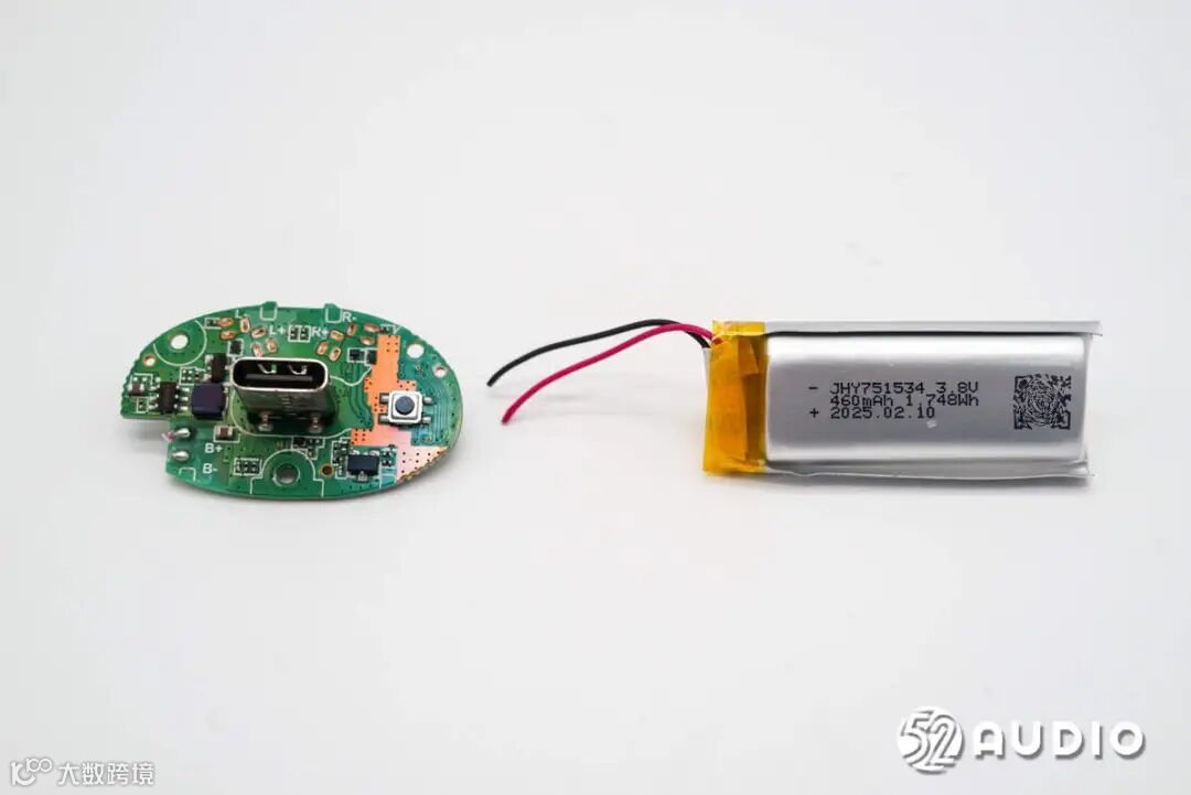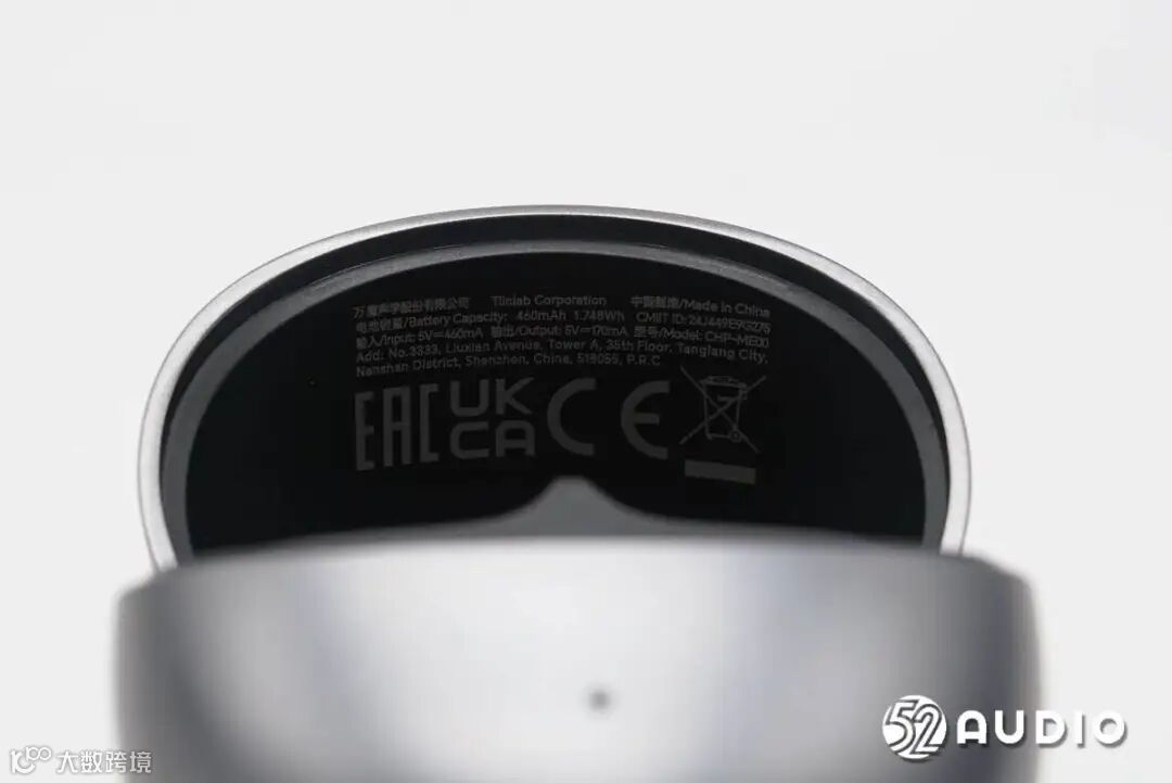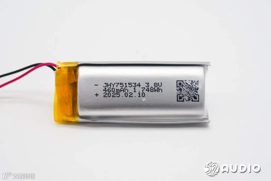 耳机内置钢壳扣式电池,型号:CH1140AA,标称电压:3.85V,额定容量:46mAh 0.1771Wh。