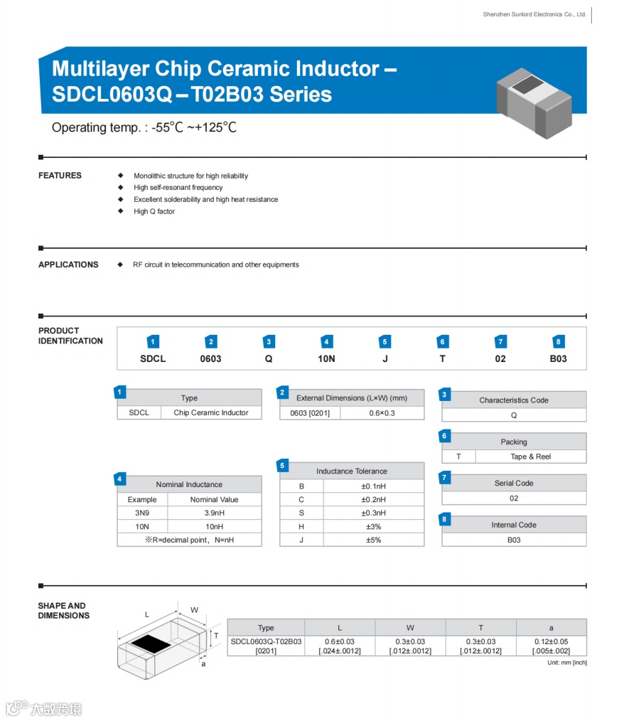 Sunlord顺络电子SDCL0603Q-T02B03系列详细资料图。
