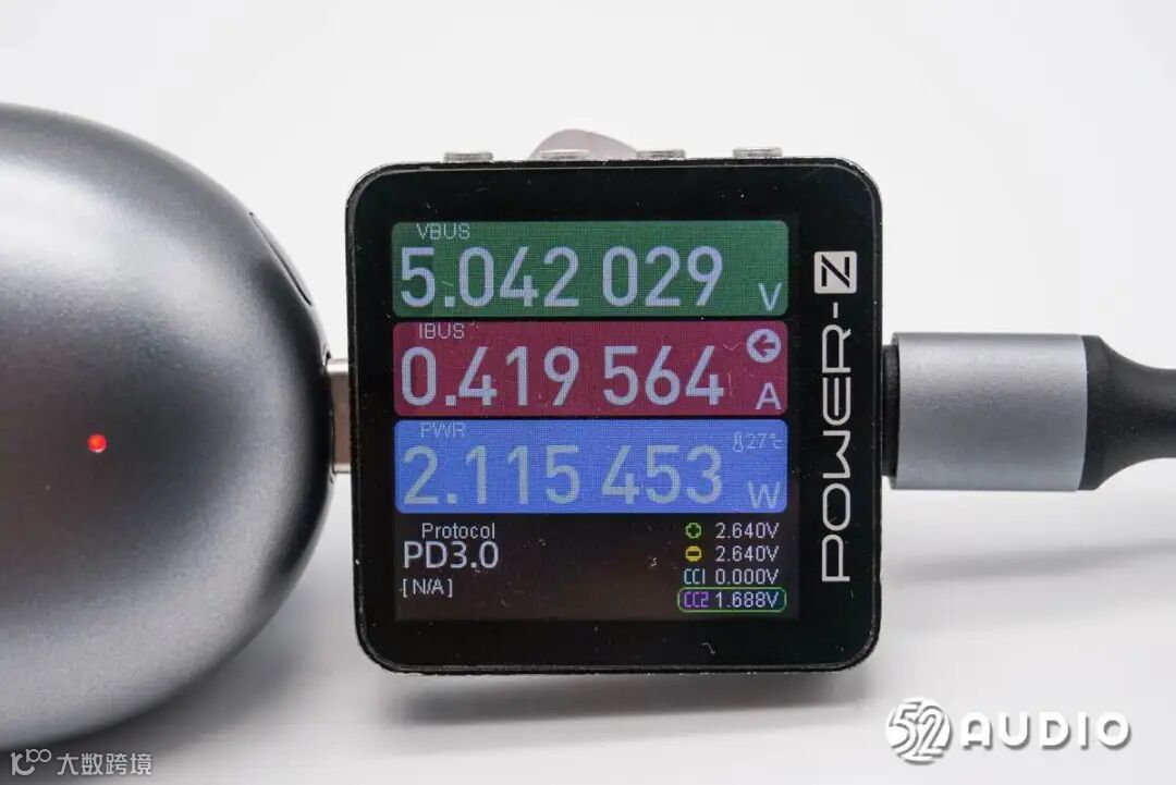 我爱音频网使用CHARGERLAB POWER-Z KM003C对荣耀亲选TiinLab S7真无线降噪耳机进行充电测试,输入功率约为2.12W。