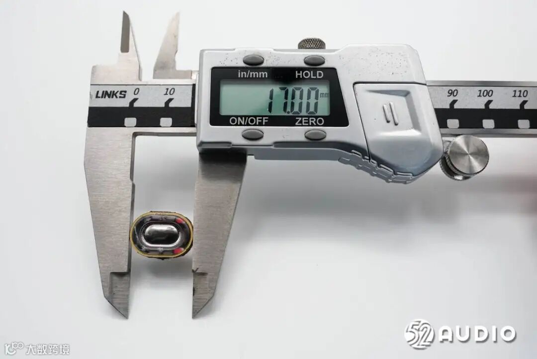 经我爱音频网实测,扬声器长直径约为17mm。