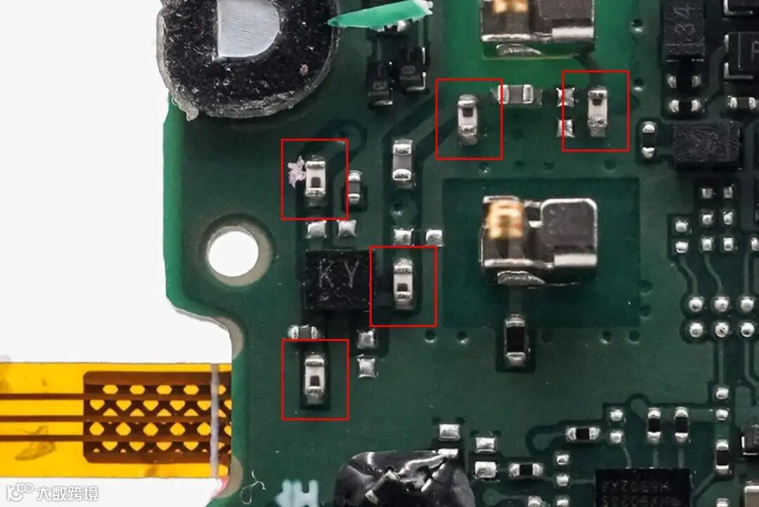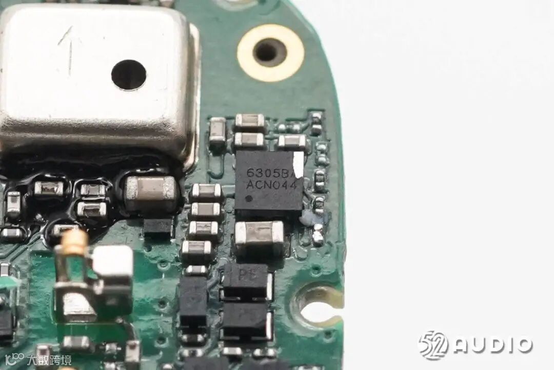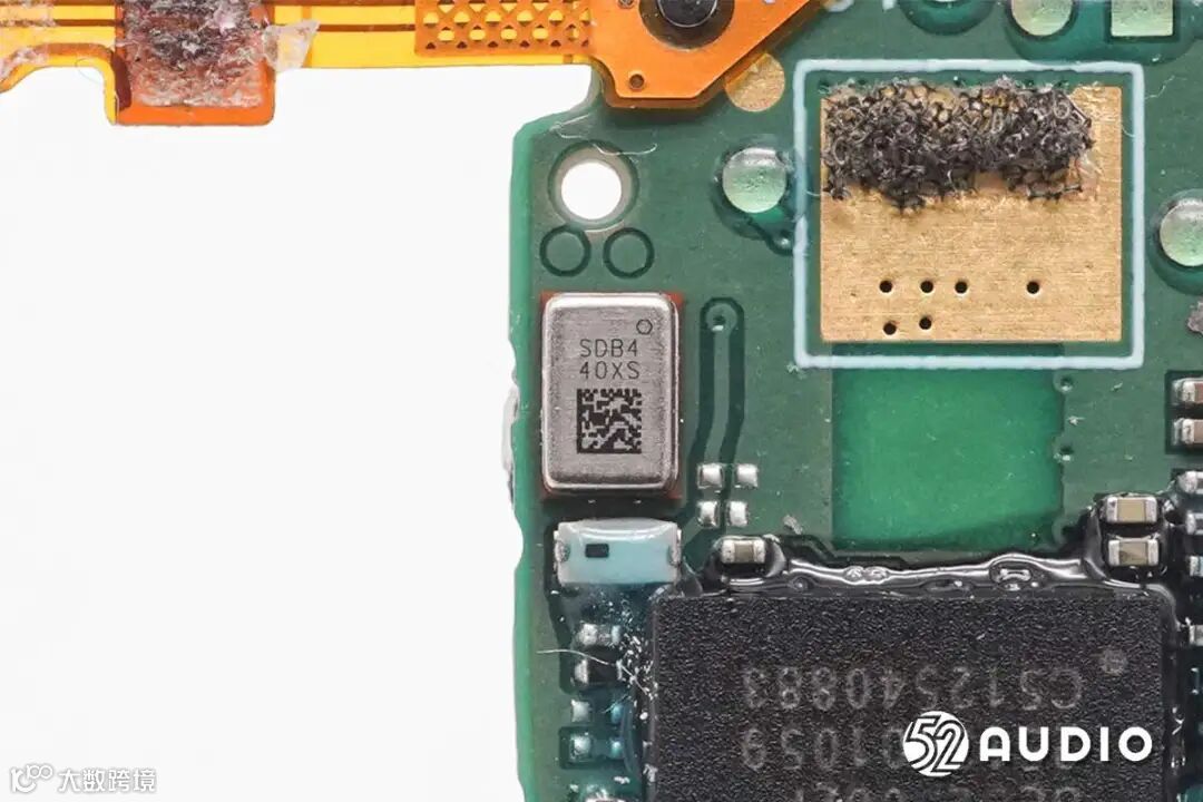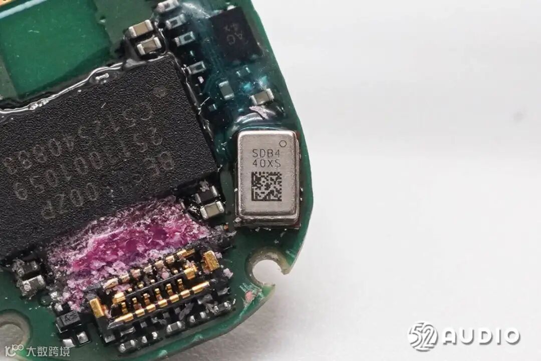 镭雕SDB4的MEMS麦克风特写,用语音通话功能拾音。