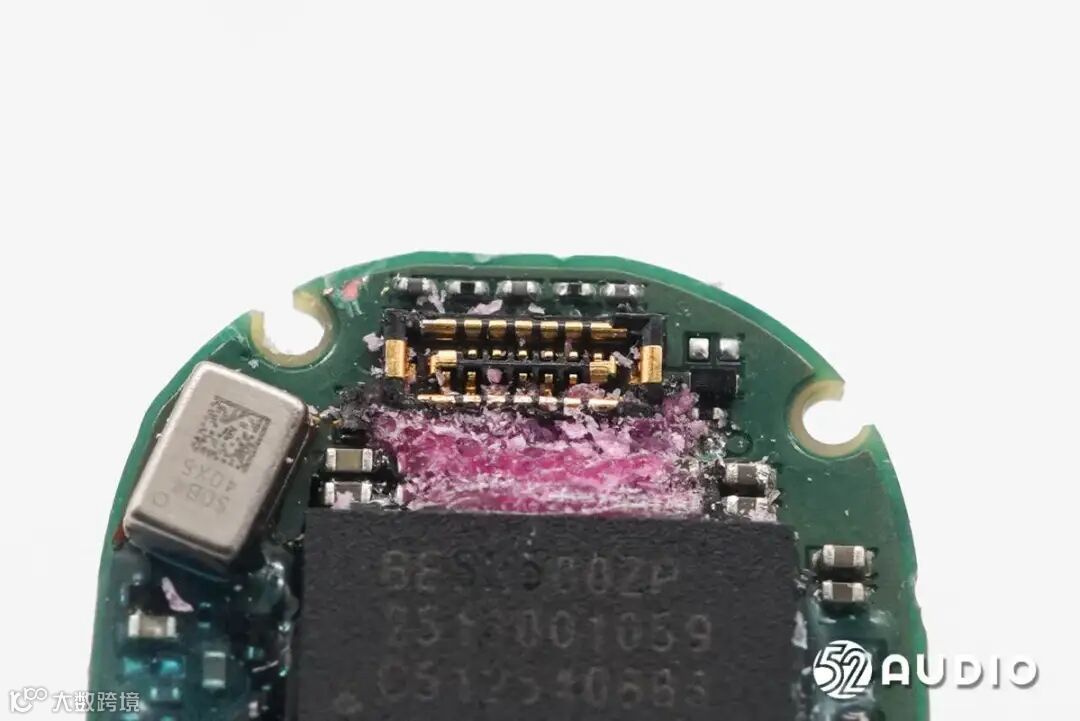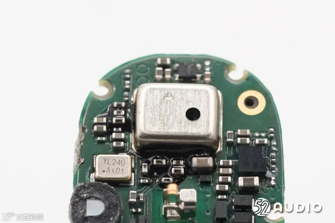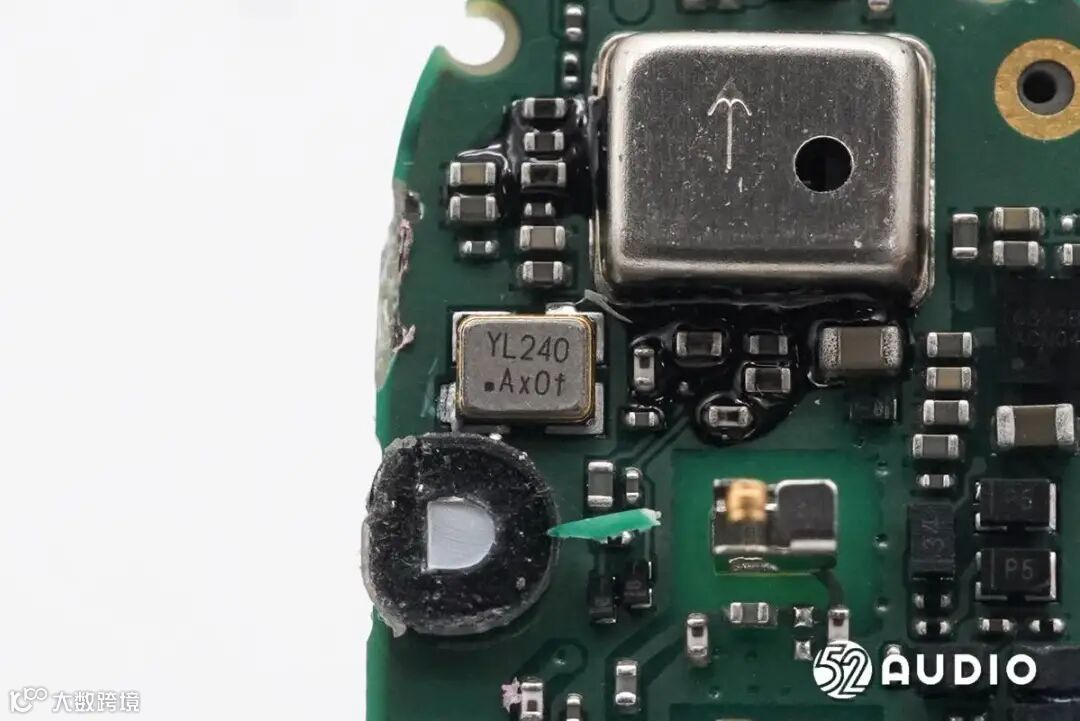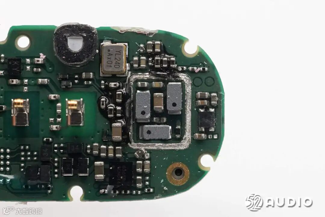 镭雕YL240的晶振特写,为蓝牙芯片提供时钟。