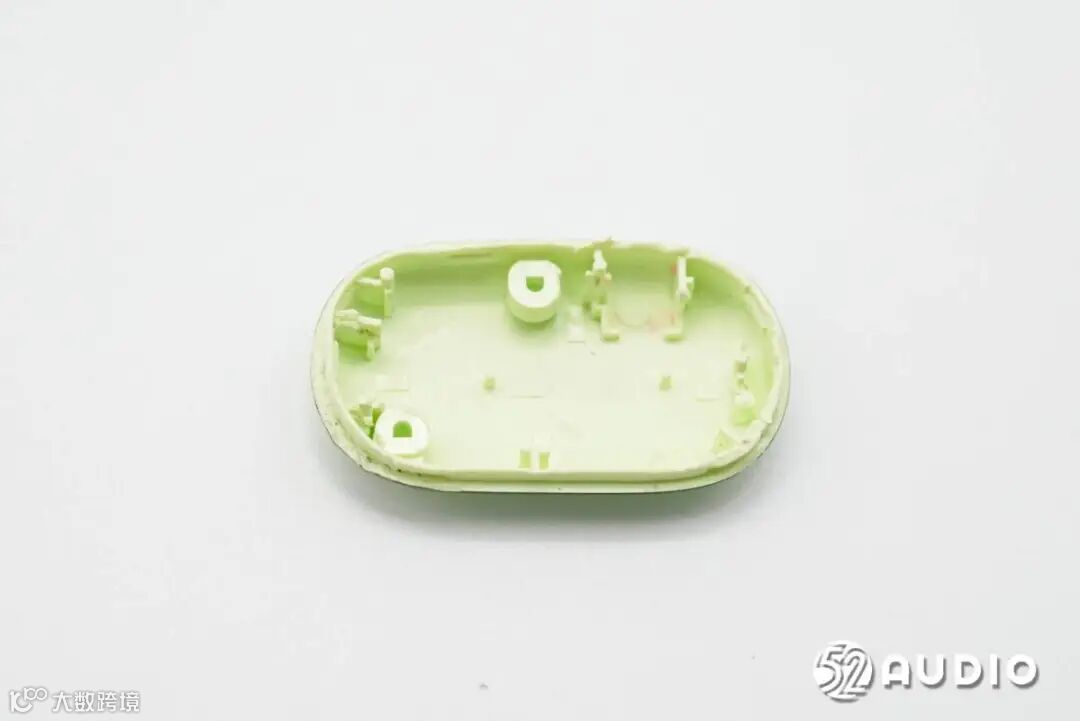 盖板内侧结构一览,上下两个拾音孔采用L型结构设计,能够降低风噪影响。