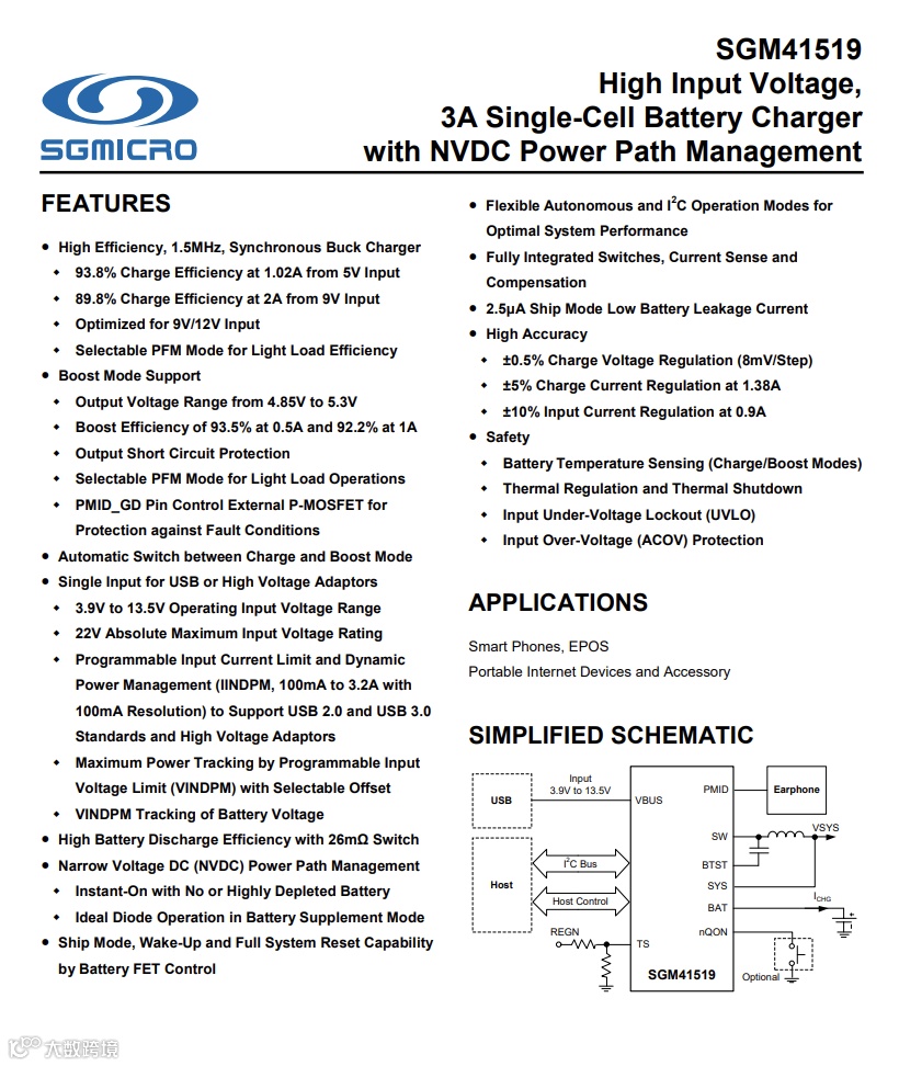 SGMICRO圣邦微SGM41519详细资料图。