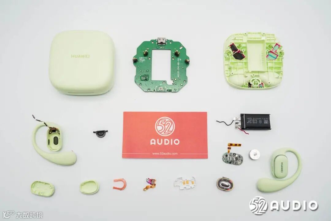 HUAWEI华为FreeArc开放式耳挂耳机拆解全家福。
