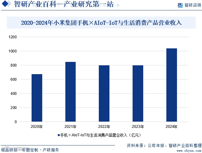 小米科技有限责任公司正式成立于2010年4月,并于2018年7月9日在香港联交所主板上市。小米公司是一家以智能手机、智能硬件和IoT平台为核心的消费电子及智能制造公司。创新与品质并重,小米不断追求极致的用户体验和运营效率。小米的使命是,始终坚持做“感动人心、价格厚道”的好产品,让全球每个人都能享受科技带来的美好生活。小米是全球领先的智能手机公司之一。根据Canalys数据,2023年在全球范围内手机出货量排名第三。小米还建立了世界领先的消费级AIoT(AI+IoT)平台,截至2023年12月31日,AIoT平台已连接的IoT设备数(不包括智能手机、平板及笔记本电脑)已达到7.40亿。小米产品遍布全球100多个国家和地区。数据显示,2024年,小米集团手机×AIoT-IoT与生活消费产品营业收入为1041亿元,同比增长29.95%。