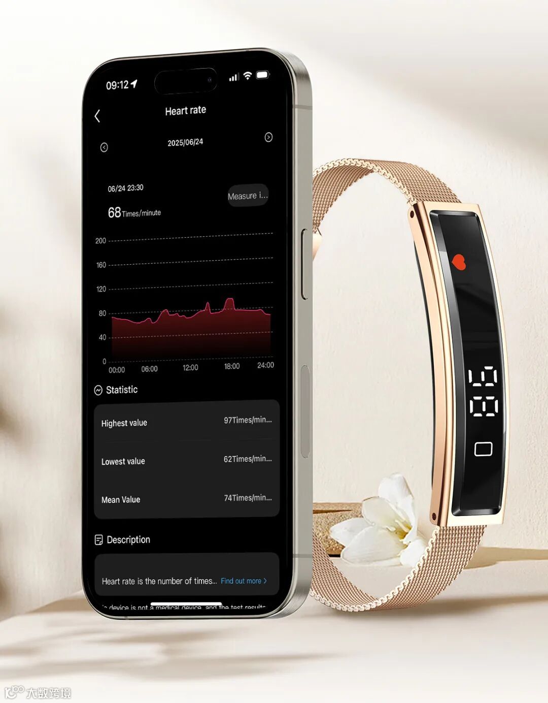 轻薄无感,两种表带:米兰表带和硅胶表带,米兰表带展现腕上极简美学,硅胶表带带你体验运动风格。