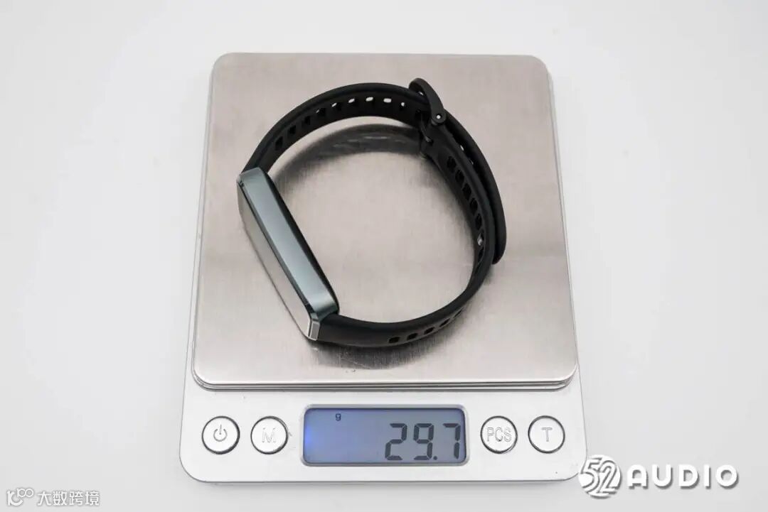 经智研所实测,HUAWEI华为手环10羽纱黑配色重量约为29.7g,佩戴轻盈舒适。