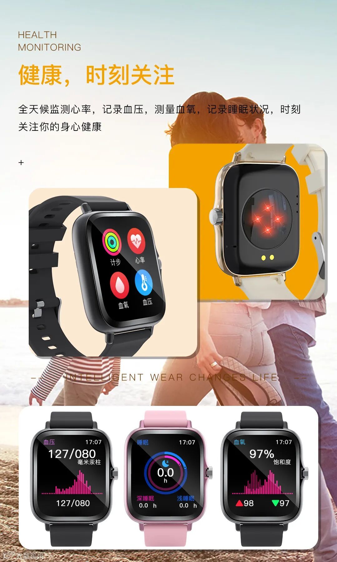 健康监测:血压监测、心率监测、血氧监测