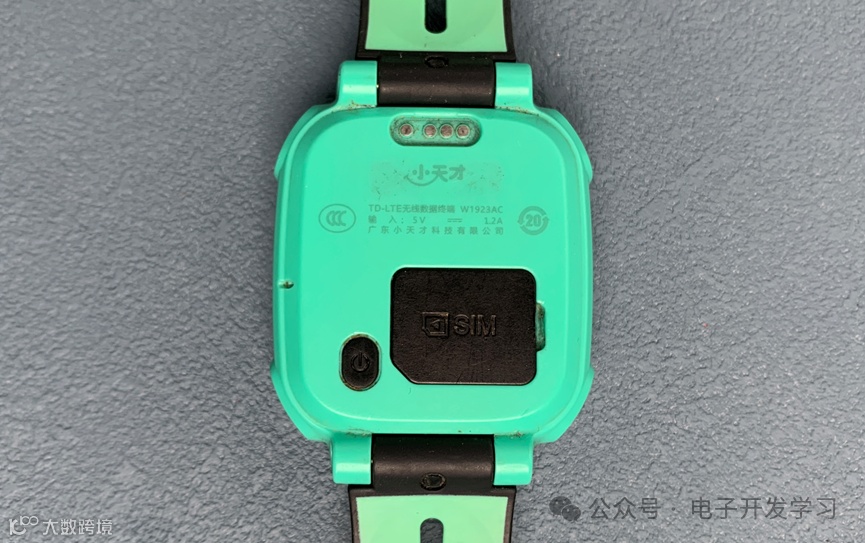 我拿到的这款是W1923AC版本。表壳背面是四个触点用来充电。下面有SIM卡槽盖、开关机按键。