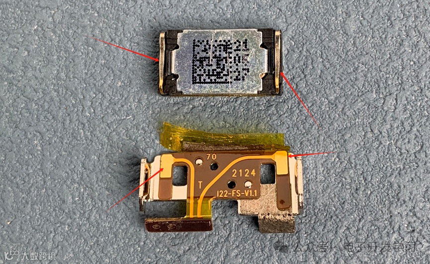 安装上去之后,扬声器和这个FPC排线的两个触点接触。