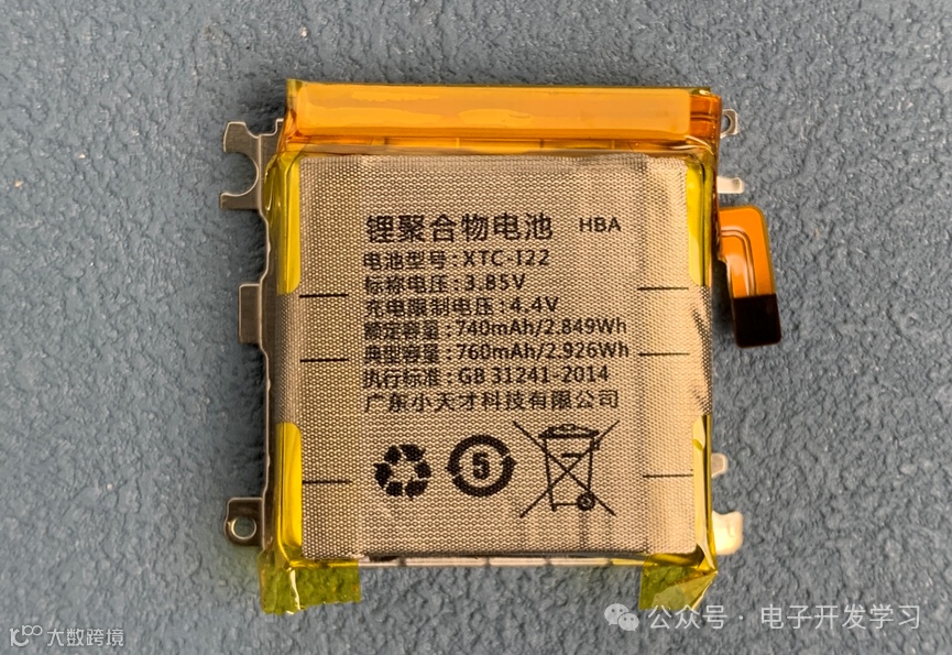 电池是锂聚合物电池,型号XTC-I22,这个电池的电压是3.85V,充电限制电压4.4V,电池容量740mAh。看这个电压和平时的锂电池不太一样啊。