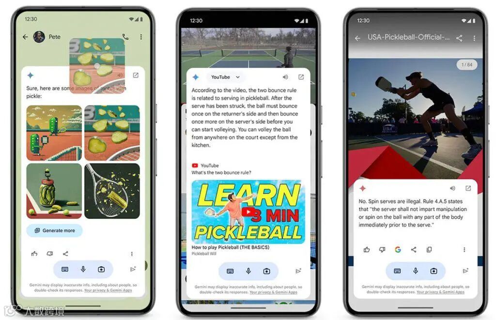 2024 年的 Google I/O 上,AI 被提及了 120 次。Gemini——对 Google AI 能力的最直接体现,Google 仍然希望其在 Android 15 上不只是一个单一应用。凭借着对系统底层框架的掌握,Google 将 Gemini 与操作系统集成得更深入,系统层面的跨应用“服务”,用户可以在任意一个应用里调出 Gemini。
