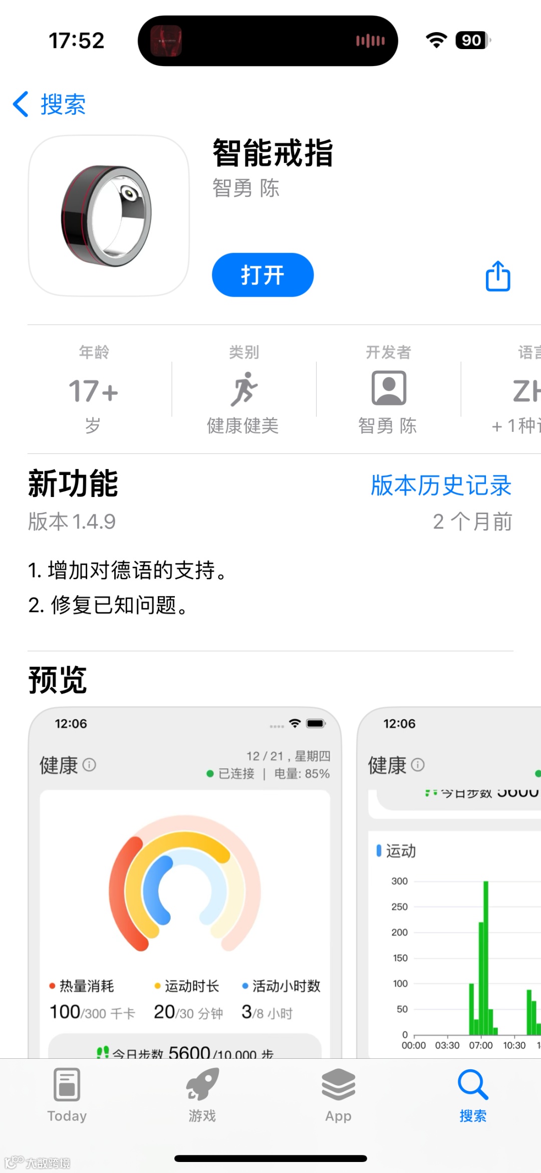 在正式使用它之前,我们先要到应用商店下载一款名为智能戒指的APP,从这个极为「普通」的命名和简陋图标就能看出其预算确实不高,但还是那句话,两百块的东西还要什么自行车呢?