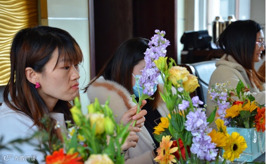 在一片芬芳中,花艺培训老师为大家详细讲解了插花花材的识别、色彩的搭配、东西方插花特点等方面的知识,并现场进行了插花展示,看到老师制作完成的精美作品之后,大家兴致盎然,纷纷跃跃欲试。