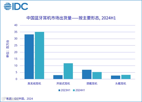 在IDC的报告中,真无线耳机的出货量上涨到3508万台,同比增长5.6%,虽然对比去年同期的增长稍有放缓,但是整体保持了5%以上的增长,并且仍然占据着蓝牙耳机出货量的63.3%。不过对比2023年高达72.4%的销量占比,可以看出真无线耳机的市场地位正在逐渐下降。