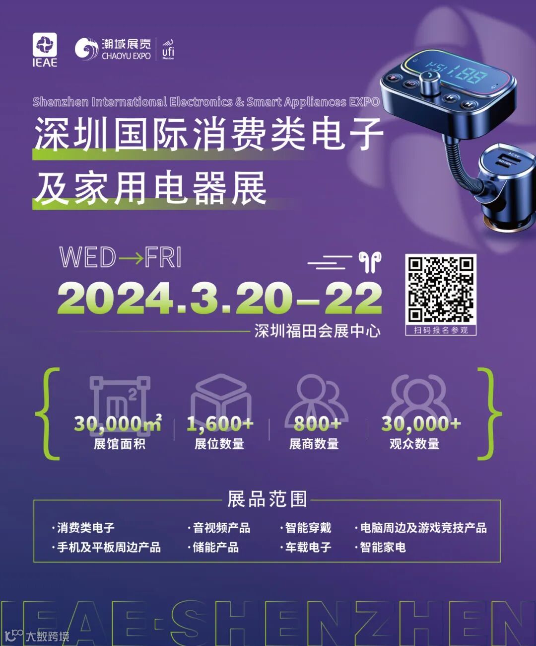 2024年3月20-22日,IEAE深圳国际消费类电子及家用电器展将于深圳福田会展中心拉开帷幕!IEAE系列展会依托丰富的办展经验及影响力已经得到了众多知名协会、品牌企业、媒体业界人士及专业买家的肯定及支持!