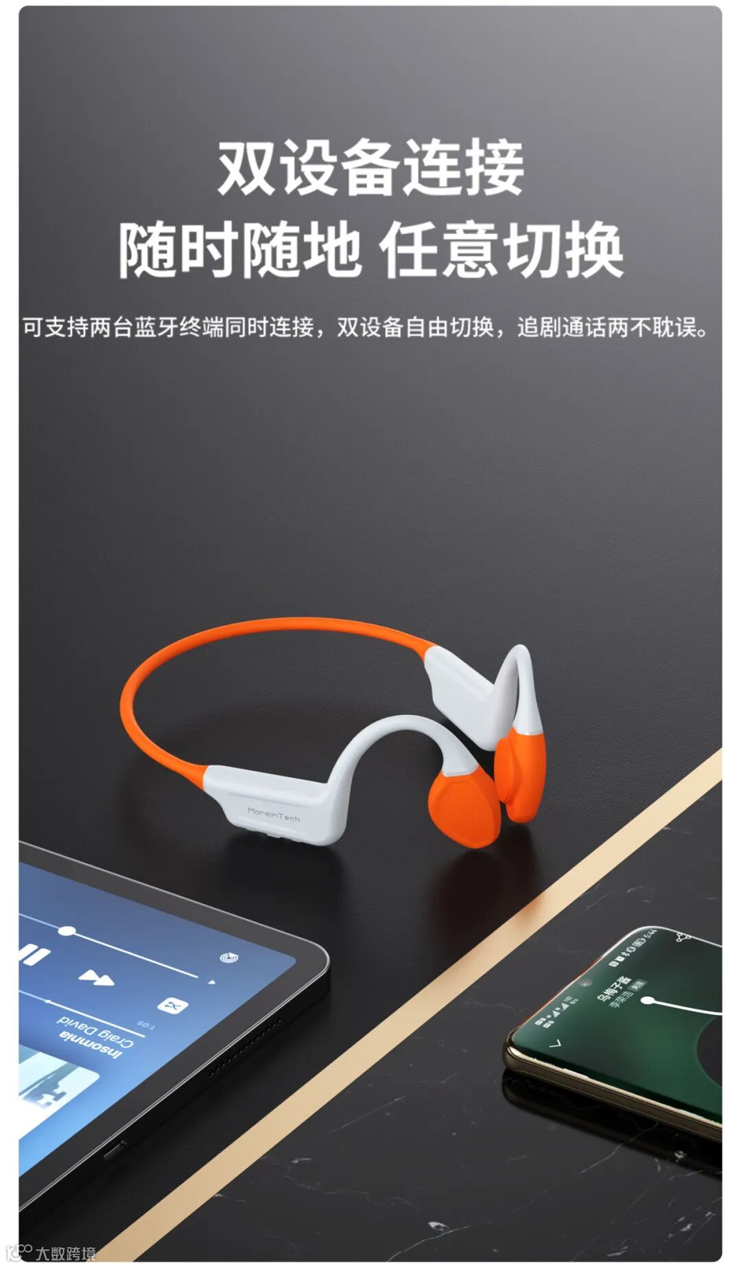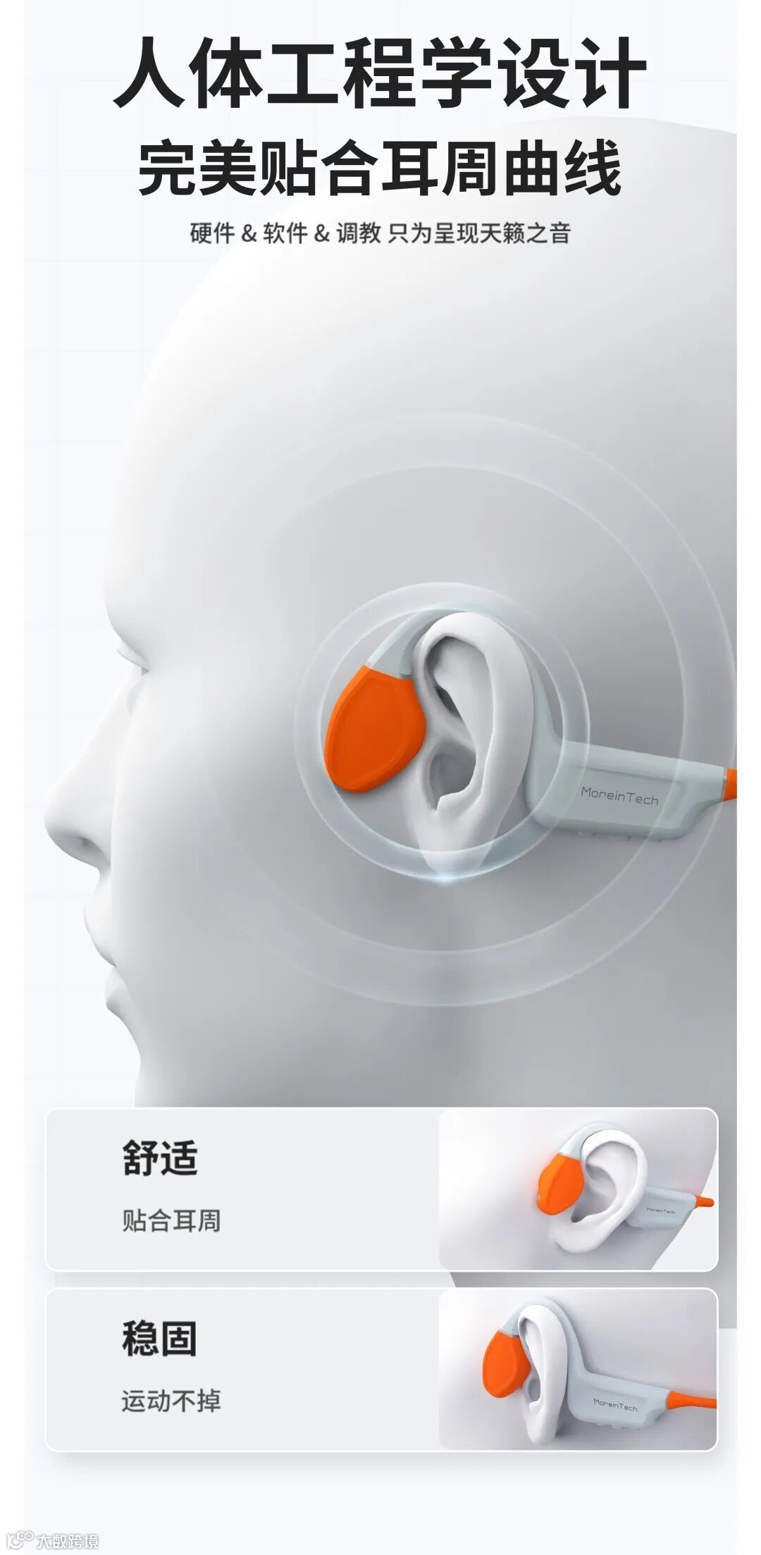 陌音的新款耳机,采用了“双音叠融” 即骨传导 +气传导融合技术,一种将空气传导声音方式与骨骼传导声音相叠加融合的技术。通过这项技术将环境噪音与音乐分离开来,让音质更加纯净,听感更震撼,随时随地轻松享受动听音乐。