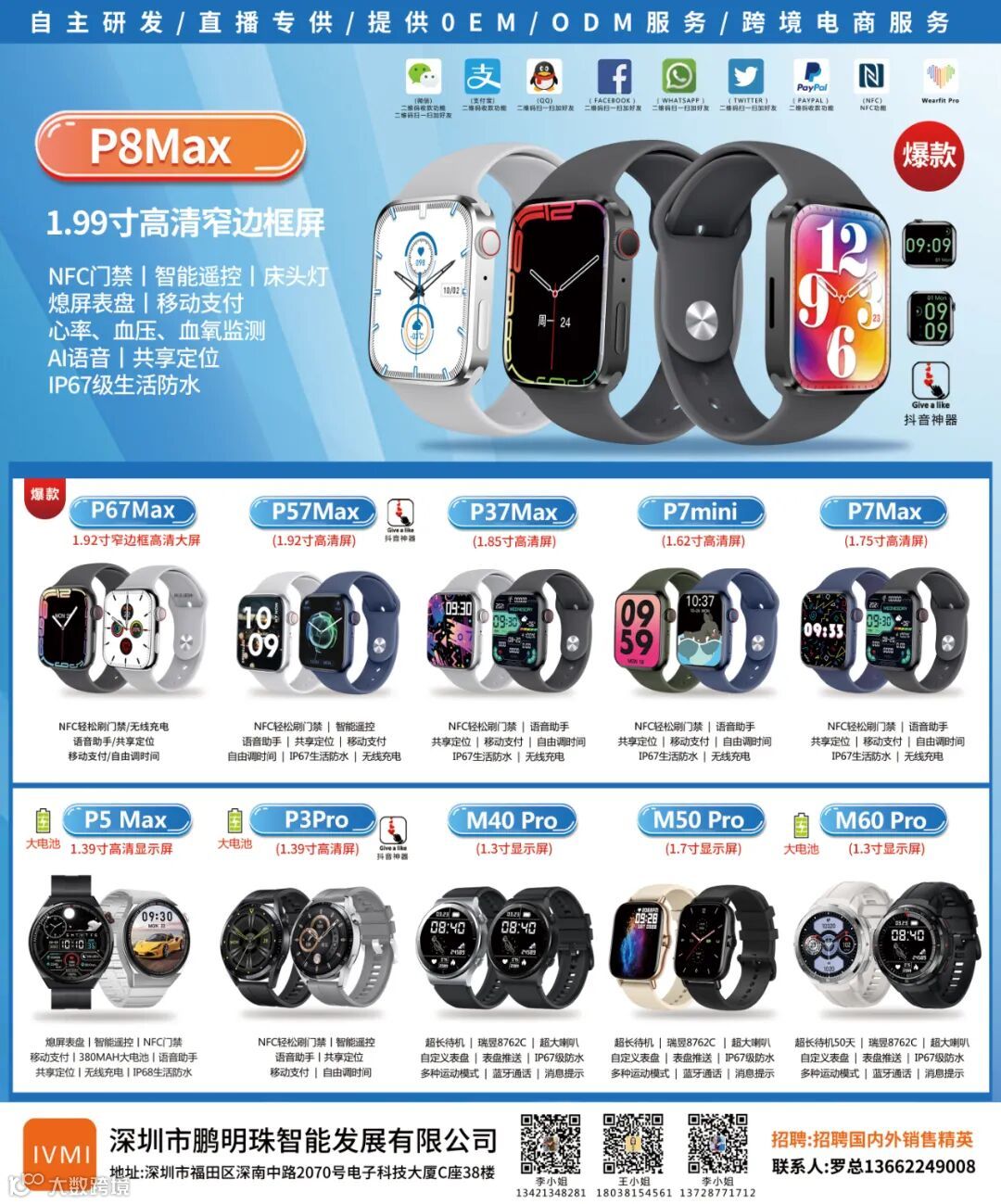 导读:【鹏明珠智能】爆款8代2.0寸高清屏,超窄边框,智能手表,隆重上市