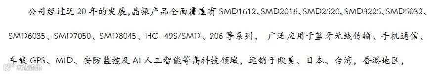 星光鸿创经过近20年的发展,晶振产品全面覆盖有SMD1612、SMD2016、SMD2520、SMD3225、SMD5032、SMD6035、SMD7050、SMD8045、HC-49S/SMD、206等系列, 星光鸿创晶振广泛应用于蓝牙无线传输、手机通信、车载GPS、MID、安防监控及AI人工智能等高科技领域,远销于欧美、日本、台湾,香港地区,与一些国际知名企业也有良好的贸易合作。