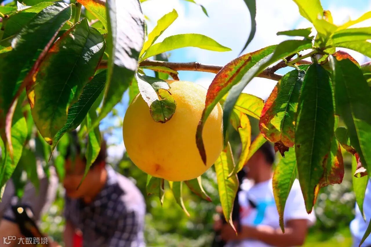 挂果之后,就是人工选果了,一颗树上的果子数量会严格控制在200-300颗之间。只有这样才能保证存留下来的黄桃有足够的养分,并能充分的享受光合作用。在将来成熟时,达到每个黄桃糖分充足,肉质香脆,并且都是200g左右大果的要求。