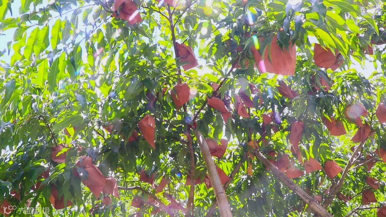保护果子的纸袋,正被果农黄叔轻轻套上。处于1400多米的高海拔地域,这里的黄桃生长周期特别漫长。山下的桃子早已成熟,这片区域的黄桃却刚开始成型。