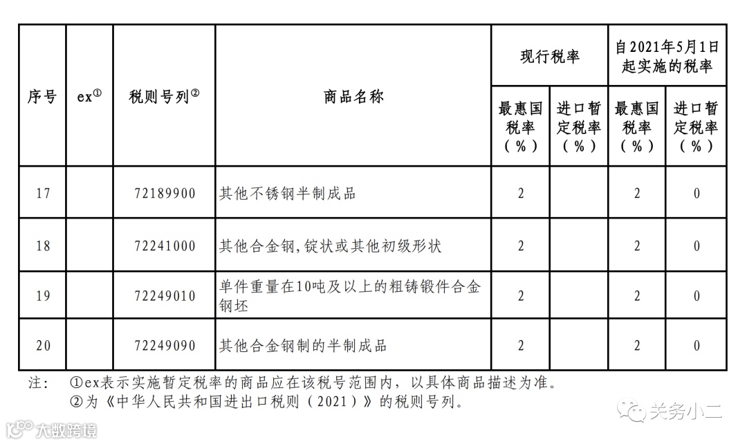 1、生铁、粗钢、再生钢铁原料、铬铁等产品实行零进口暂定税率;