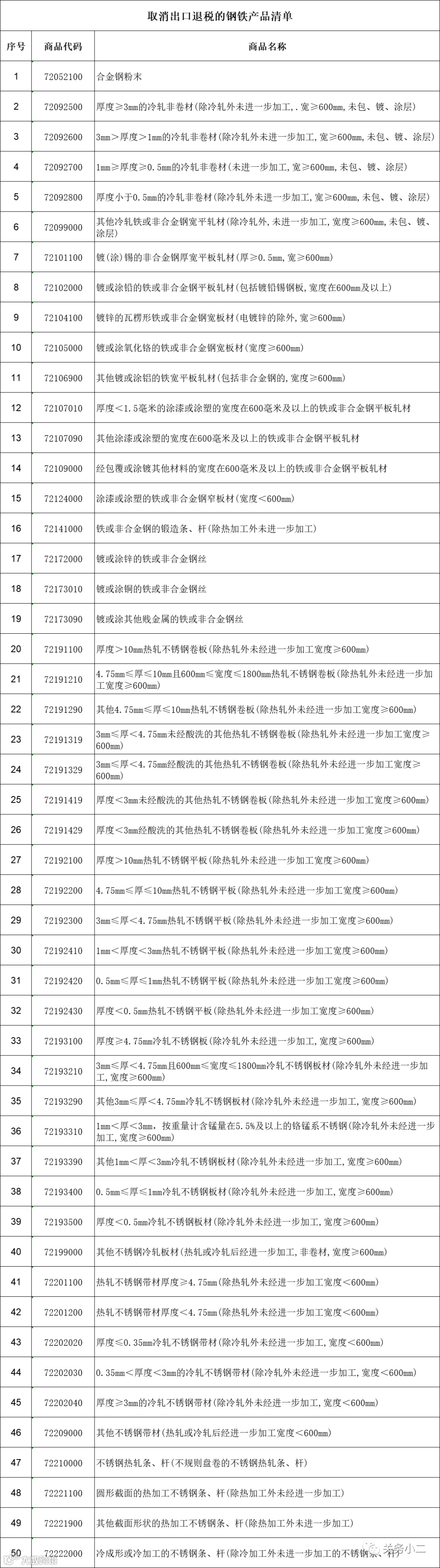 取消部分钢铁产品出口退税