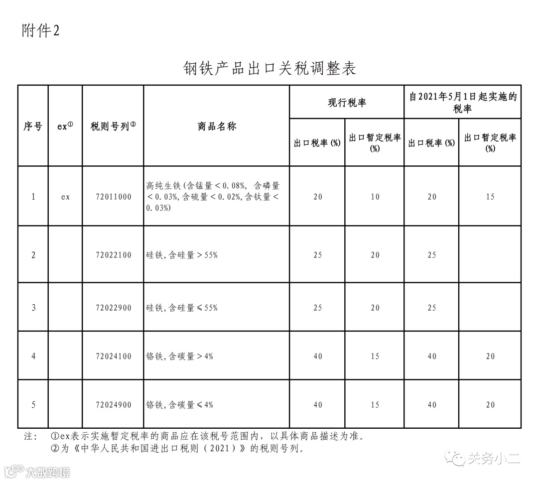 2、适当提高硅铁、铬铁、高纯生铁等产品的出口关税,调整后分别实行25%出口税率、20%出口暂定税率、15%出口暂定税率;