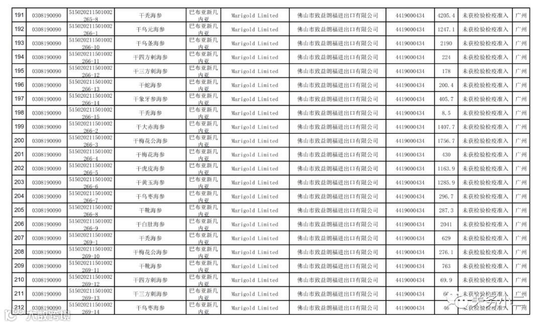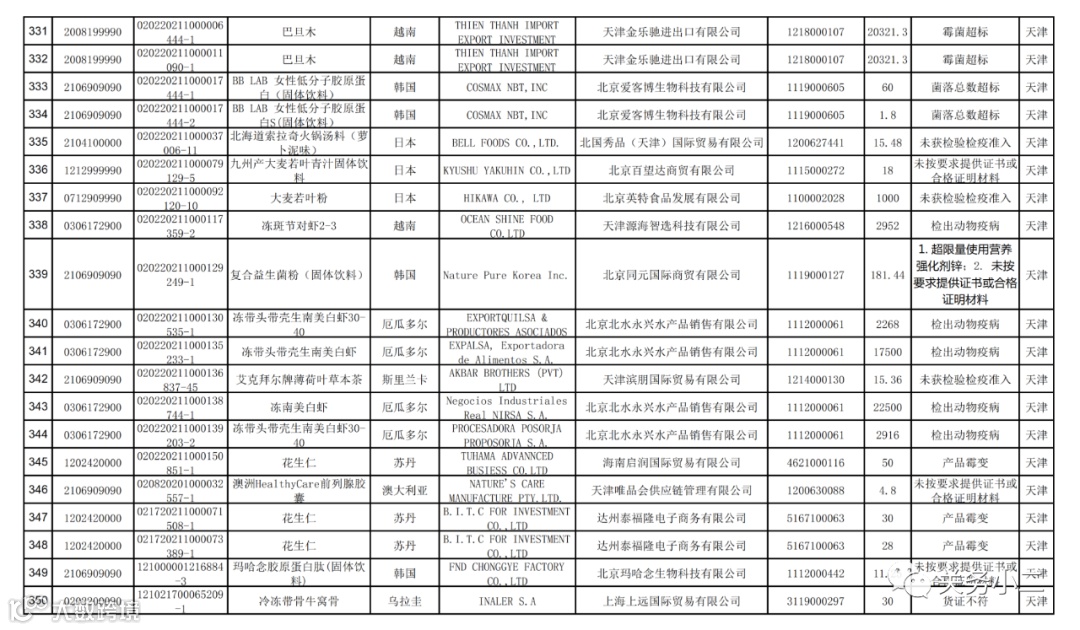 2021年9月17日,海关总署发布了《2021年8月全国未准入境食品化妆品信息》,据统计,2021年8月全国海关在口岸监管环节检出安全卫生项目不合格并未准入境食品化妆品共368批次,其中,未准入境食品361批次,化妆品7批次。未准入境食品化妆品均已在口岸依法做退运或销毁处理。