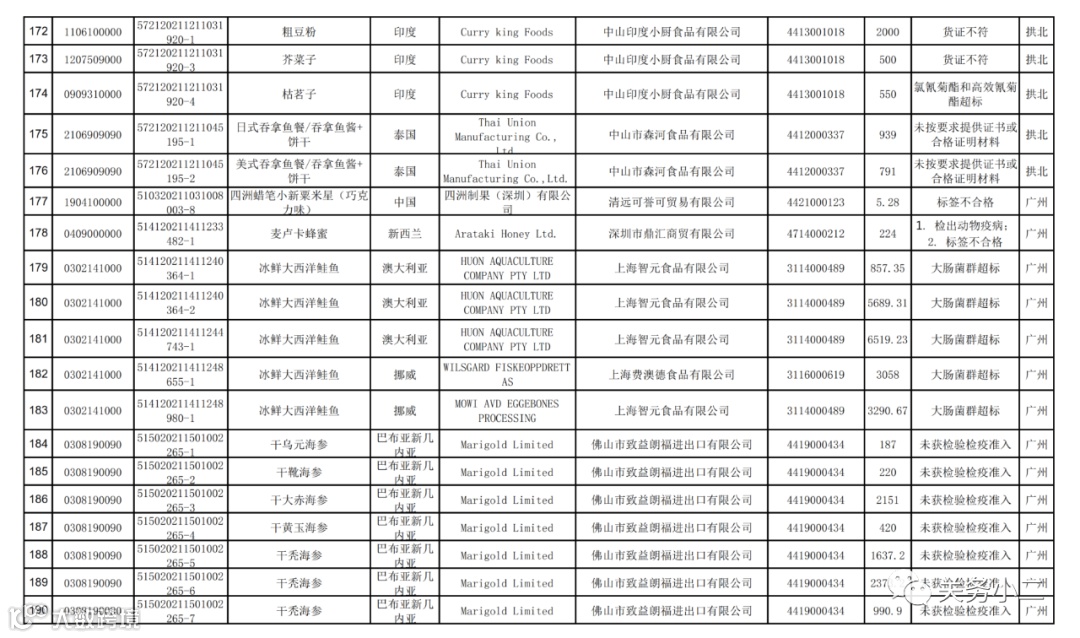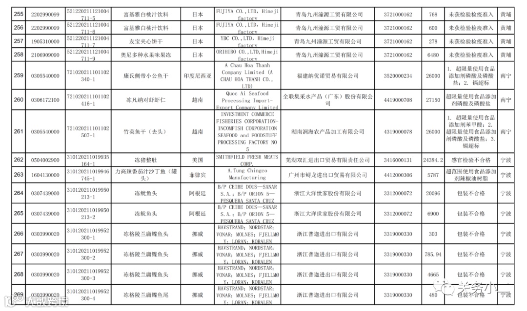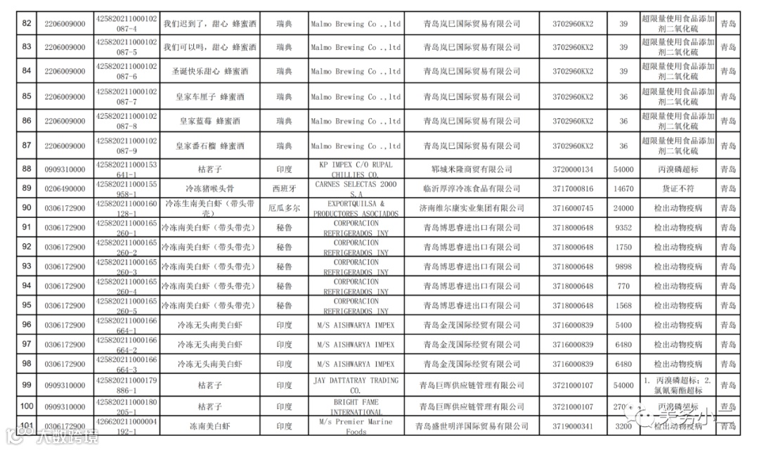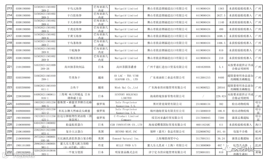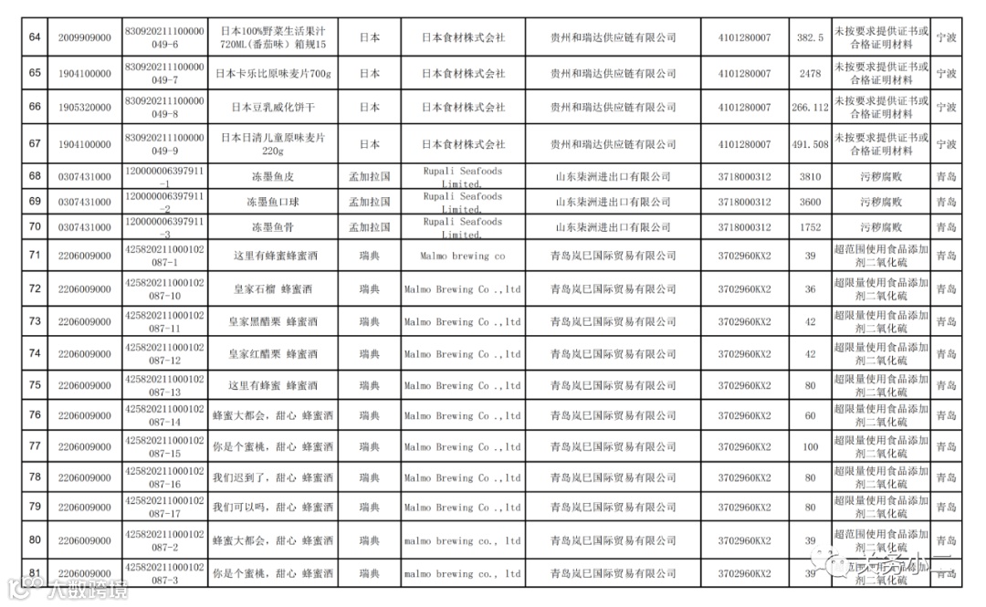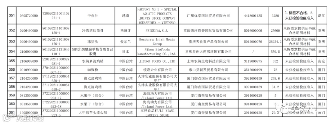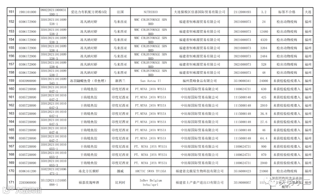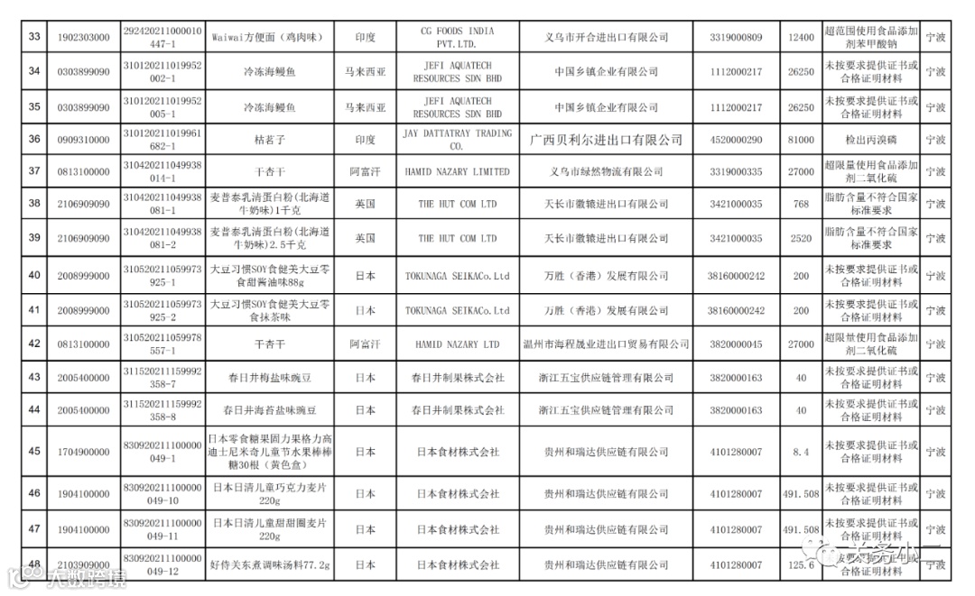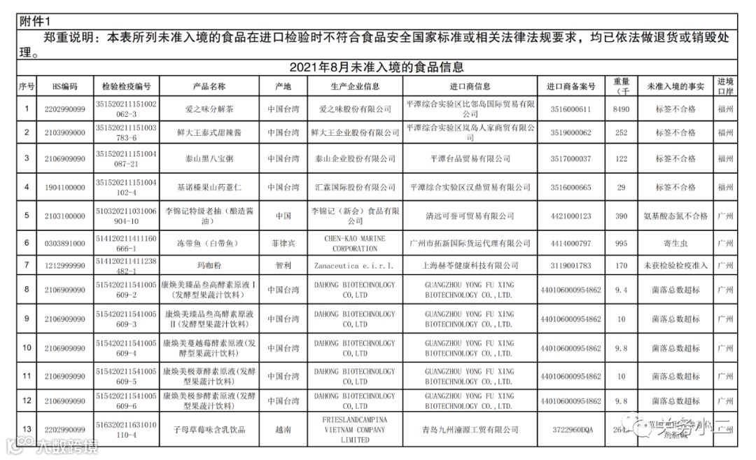 附件1:2021年8月未准入境的食品信息