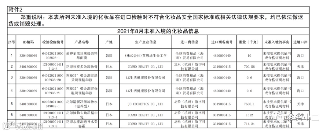 附件2:2021年8月未准入境的化妆品信息