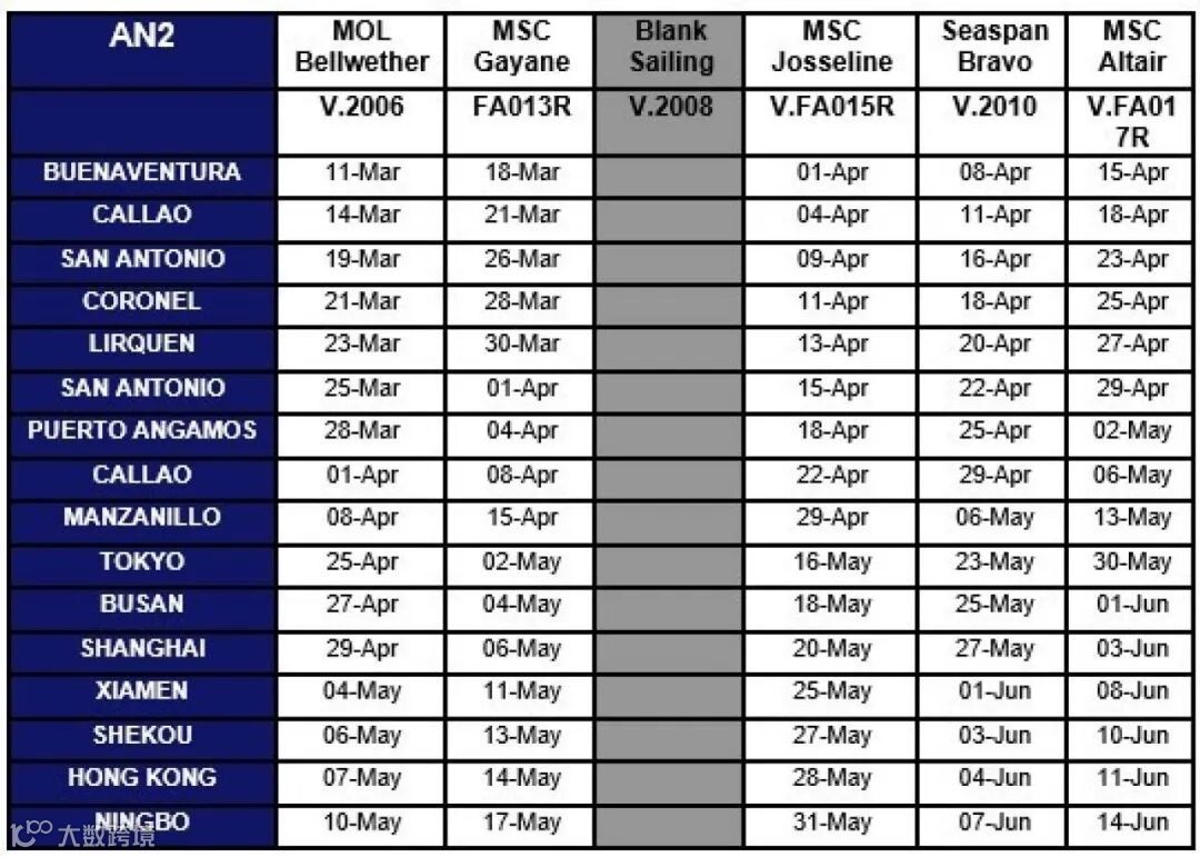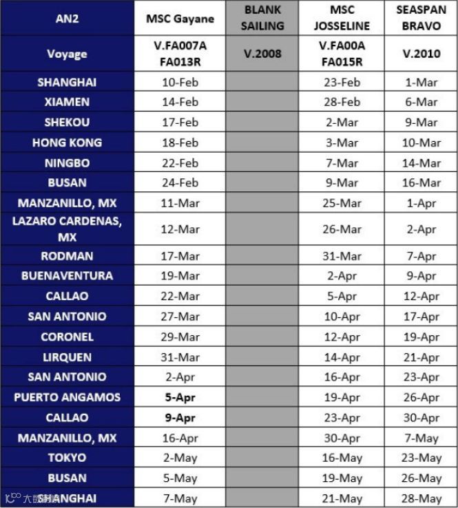 亚洲-南美洲东海岸航线(AN1 & AS2)