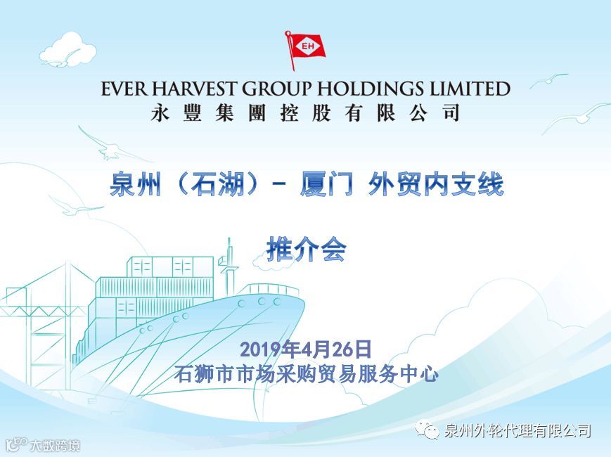 2019年4月26日下午,永丰集团控股有限公司“泉州(石湖)—厦门外贸内支线”推介会在石狮市市场采购贸易服务中心顺利举行。