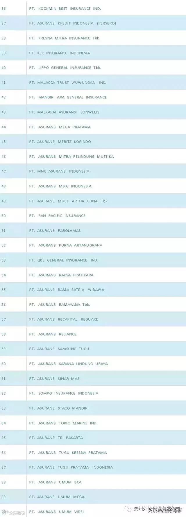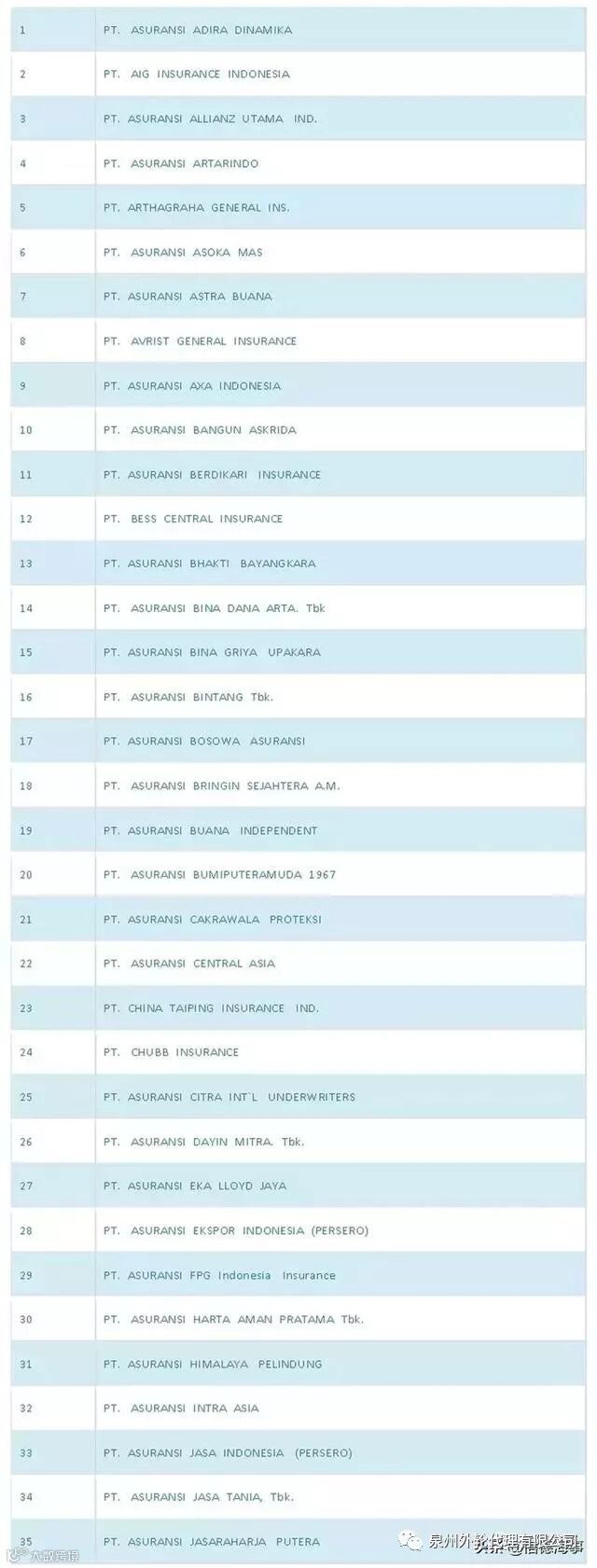 目前获得印尼政府批准的本地保险公司名单如下: