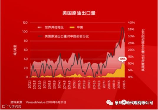 其中,美国出口至中国的原油大多数都是通过超大型油轮(VLCC)进行运输,考虑航程的影响,这在一定程度上极大地增加了油轮市场对超大型油轮吨英里的需求。但因受中美贸易战的影响,中国减少或停止进口美国原油,预计美国届时将加大原油折扣力度,对美国生产商产生不利,并需要他们向欧洲和大西洋流域寻求更多的出口机会。简言之,这将有利于阿芙拉型船(Aframax),而对VLCC市场造成冲击。